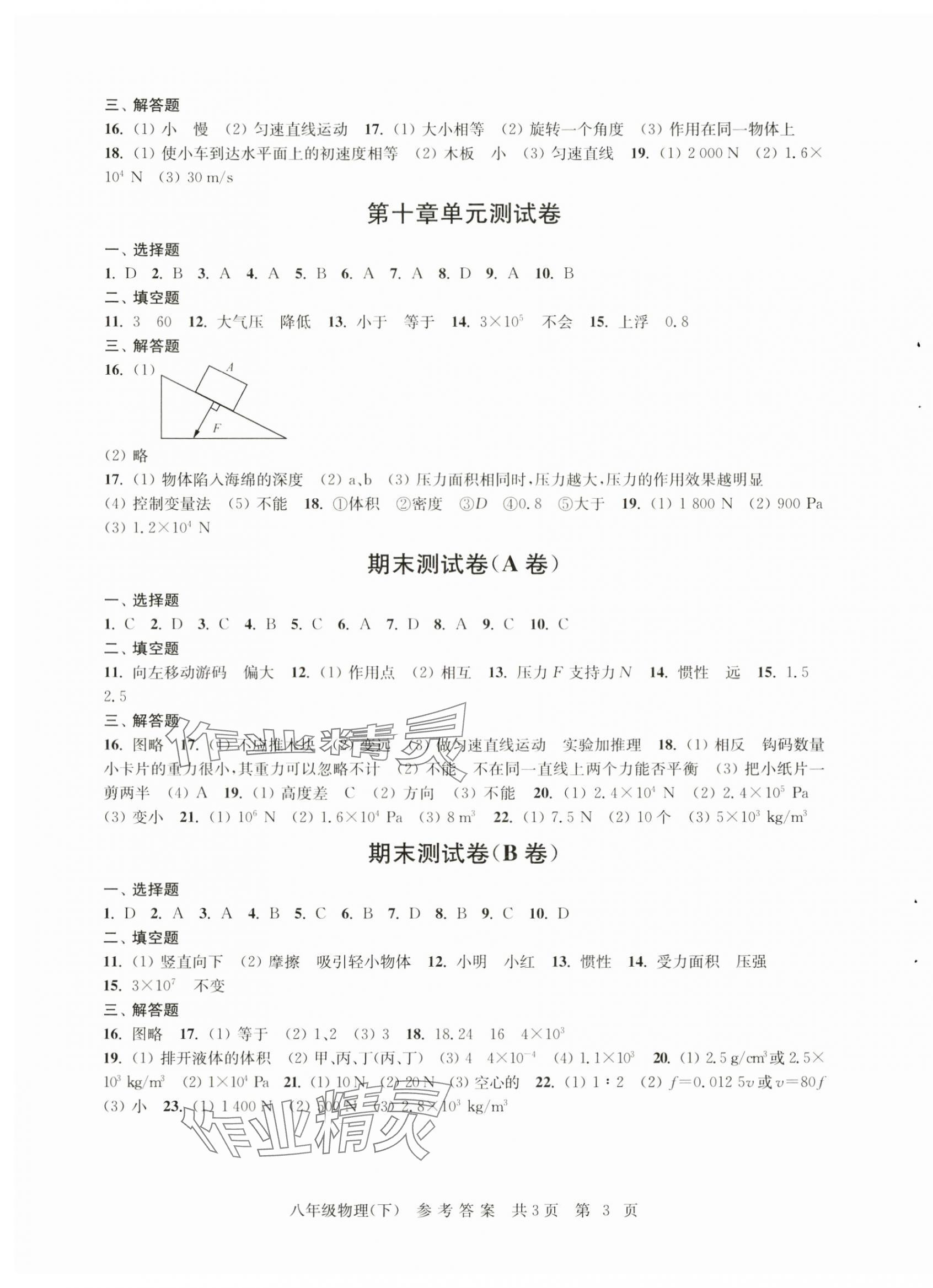 注:目前有些书本章节名称可能整理的还不是很完善,但都是按照顺序排列的,请同学们按照顺序仔细查找。练习册 2024年伴你学单元达标检测卷八年级物理下册苏科版 答案主要是用来给同学们做完题方便对答案用的,请勿直接抄袭。