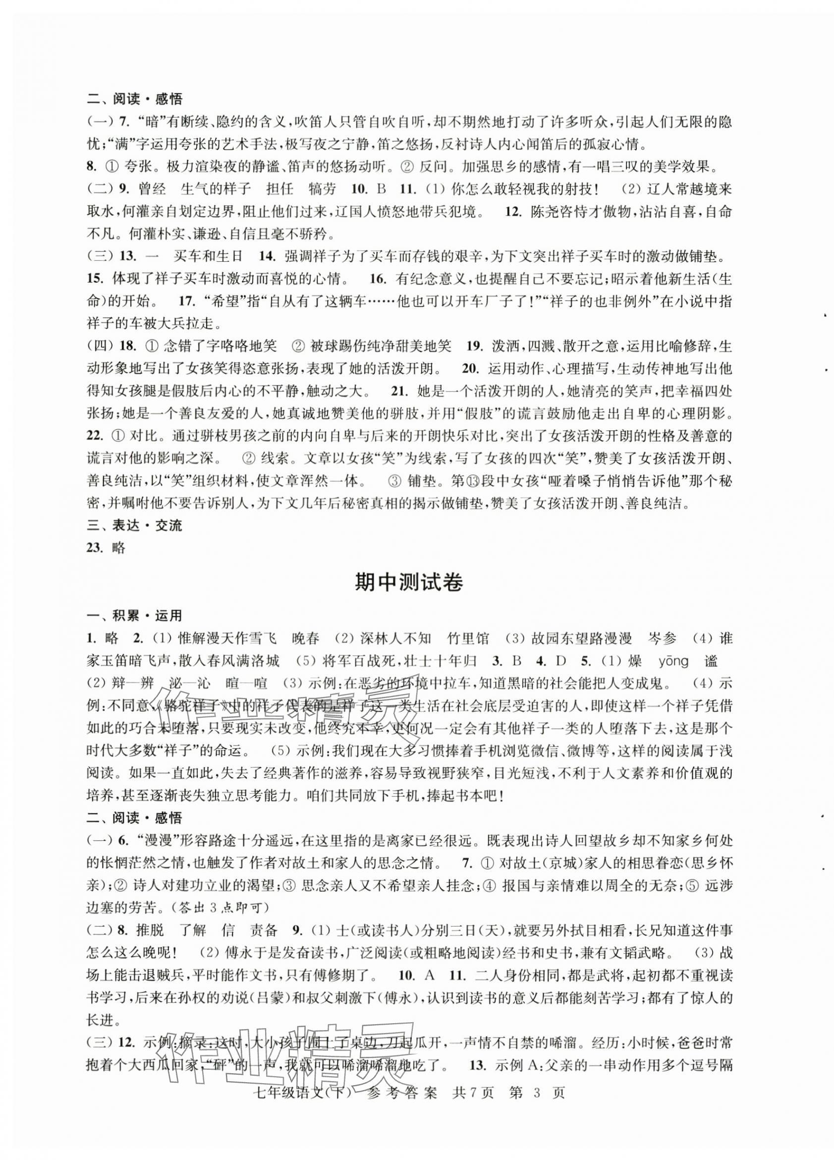 注:目前有些书本章节名称可能整理的还不是很完善,但都是按照顺序排列的,请同学们按照顺序仔细查找。练习册 2024年伴你学单元达标检测卷七年级语文下册人教版 答案主要是用来给同学们做完题方便对答案用的,请勿直接抄袭。