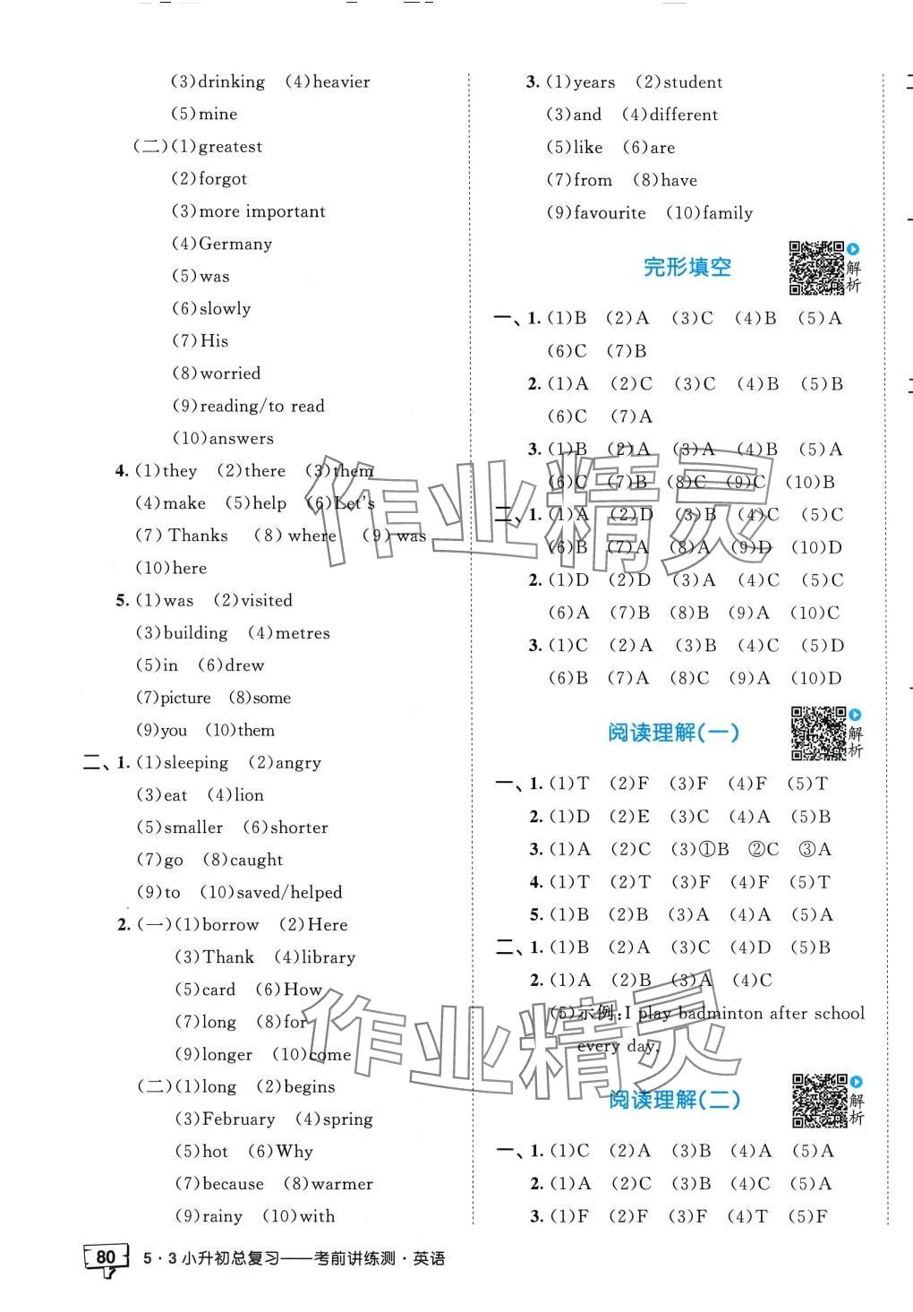 注:目前有些书本章节名称可能整理的还不是很完善,但都是按照顺序排列的,请同学们按照顺序仔细查找。练习册 2024年53小升初总复习考前讲练测英语 答案主要是用来给同学们做完题方便对答案用的,请勿直接抄袭。