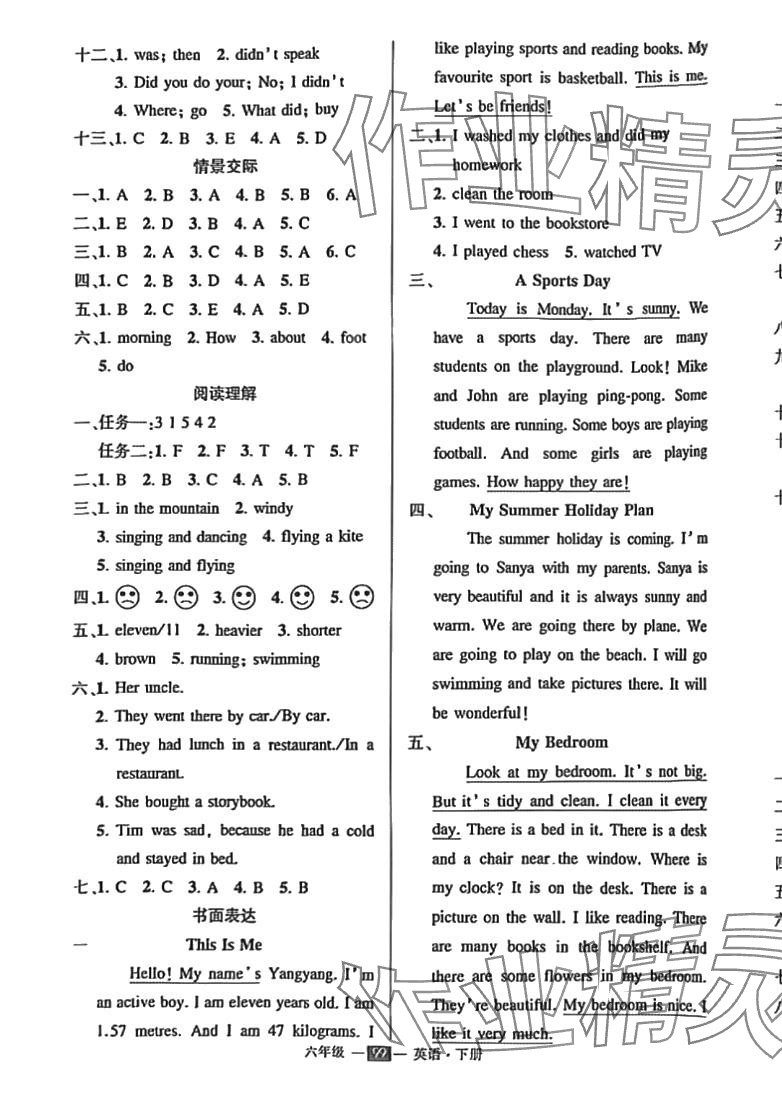 注:目前有些书本章节名称可能整理的还不是很完善,但都是按照顺序排列的,请同学们按照顺序仔细查找。练习册 2024年状元成才路创优作业100分六年级英语下册人教版 答案主要是用来给同学们做完题方便对答案用的,请勿直接抄袭。