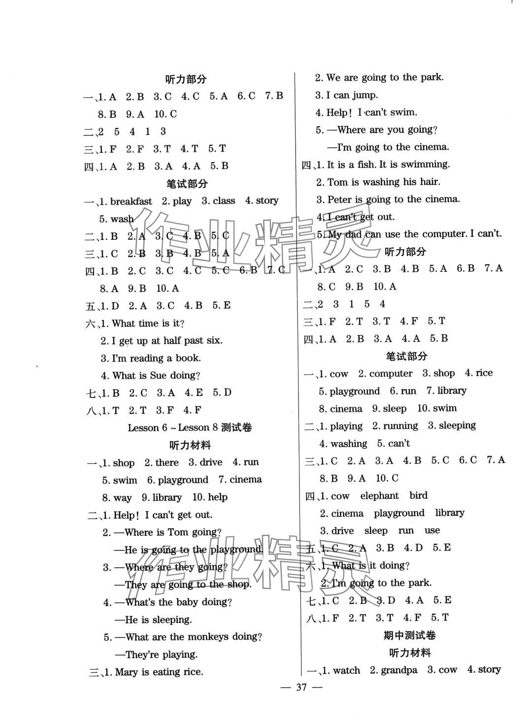 注:目前有些书本章节名称可能整理的还不是很完善,但都是按照顺序排列的,请同学们按照顺序仔细查找。练习册 2024年激活思维智能训练四年级英语下册接力版 答案主要是用来给同学们做完题方便对答案用的,请勿直接抄袭。