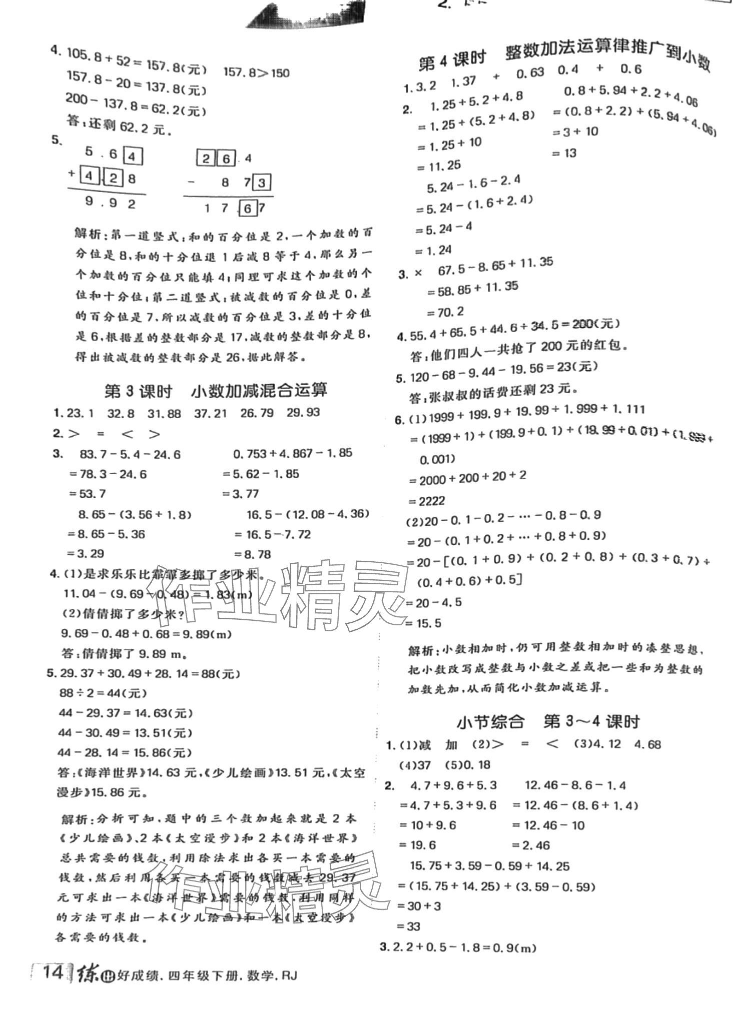注:目前有些书本章节名称可能整理的还不是很完善,但都是按照顺序排列的,请同学们按照顺序仔细查找。练习册 2024年练出好成绩四年级数学下册人教版 答案主要是用来给同学们做完题方便对答案用的,请勿直接抄袭。
