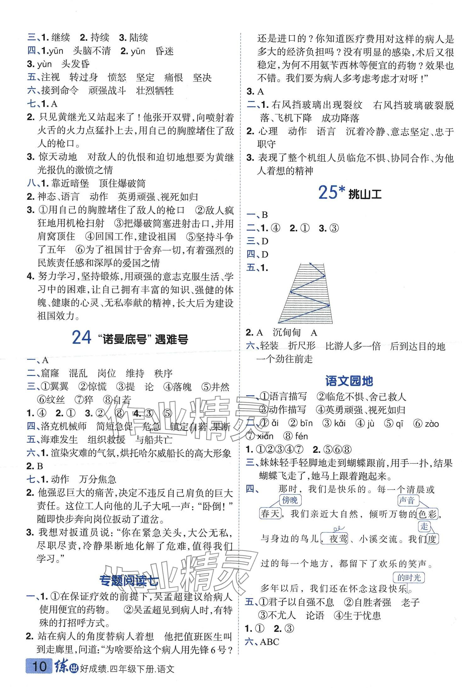 注:目前有些书本章节名称可能整理的还不是很完善,但都是按照顺序排列的,请同学们按照顺序仔细查找。练习册 2024年练出好成绩四年级语文下册人教版 答案主要是用来给同学们做完题方便对答案用的,请勿直接抄袭。