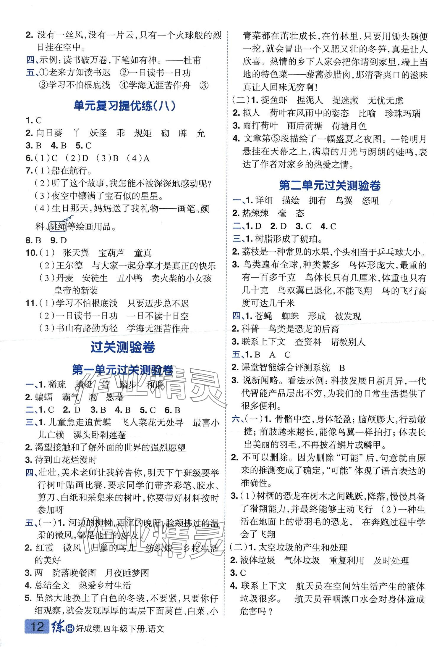 注:目前有些书本章节名称可能整理的还不是很完善,但都是按照顺序排列的,请同学们按照顺序仔细查找。练习册 2024年练出好成绩四年级语文下册人教版 答案主要是用来给同学们做完题方便对答案用的,请勿直接抄袭。