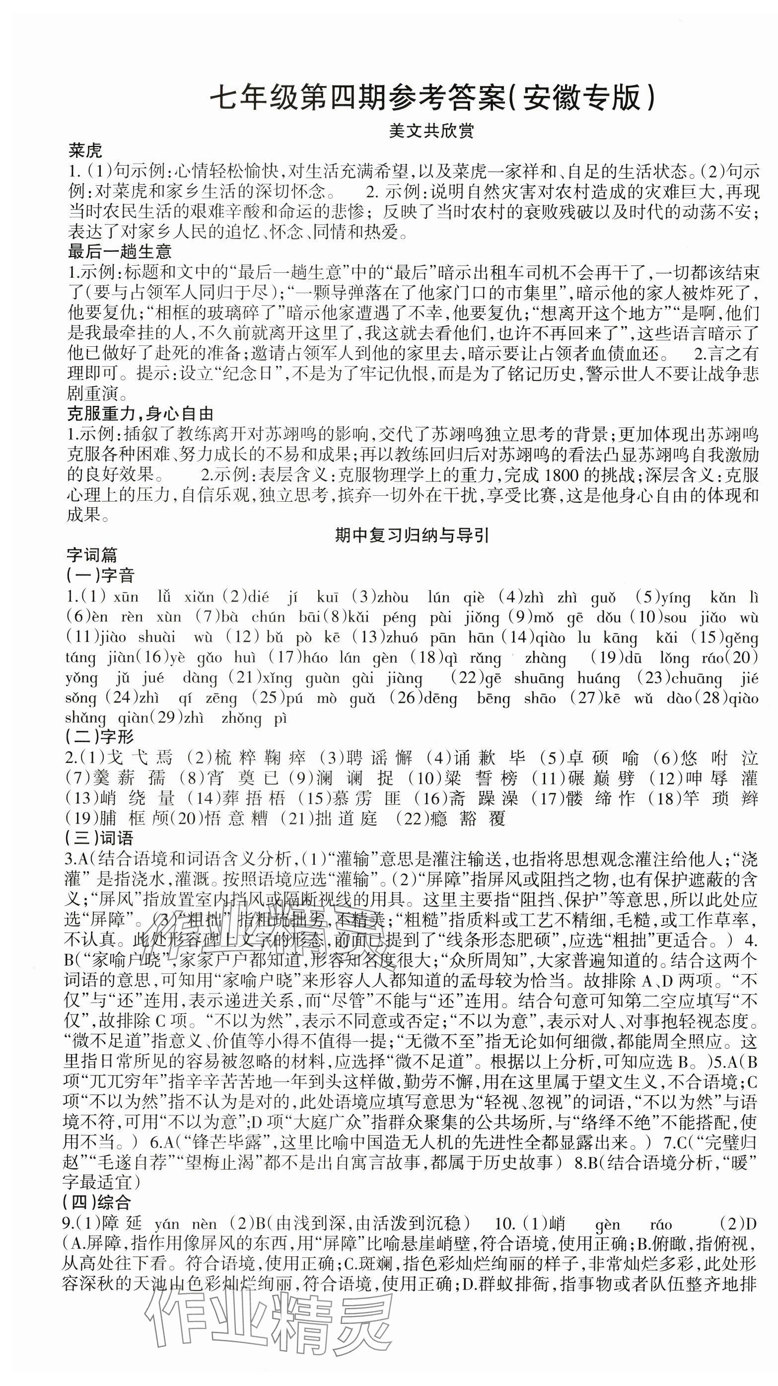 注:目前有些书本章节名称可能整理的还不是很完善,但都是按照顺序排列的,请同学们按照顺序仔细查找。练习册 2024年语文活页七年级语文下册人教版安徽专版 答案主要是用来给同学们做完题方便对答案用的,请勿直接抄袭。