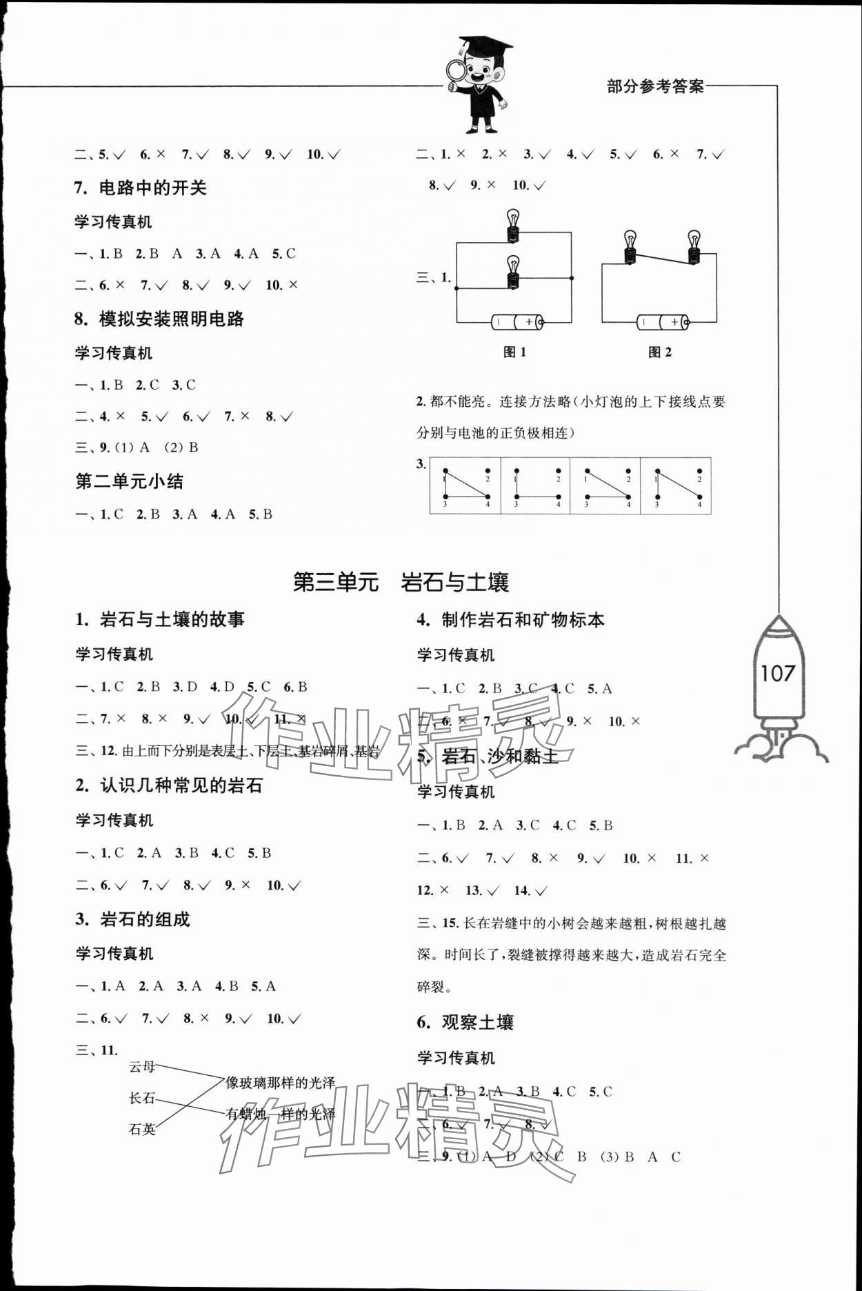 注:目前有些书本章节名称可能整理的还不是很完善,但都是按照顺序排列的,请同学们按照顺序仔细查找。练习册 2024年小学科学习作四年级下册教科版 答案主要是用来给同学们做完题方便对答案用的,请勿直接抄袭。