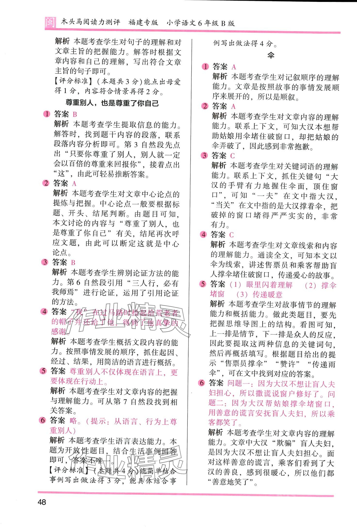 注:目前有些书本章节名称可能整理的还不是很完善,但都是按照顺序排列的,请同学们按照顺序仔细查找。练习册 2024年木头马阅读力测评六年级语文人教版B版福建专版 答案主要是用来给同学们做完题方便对答案用的,请勿直接抄袭。
