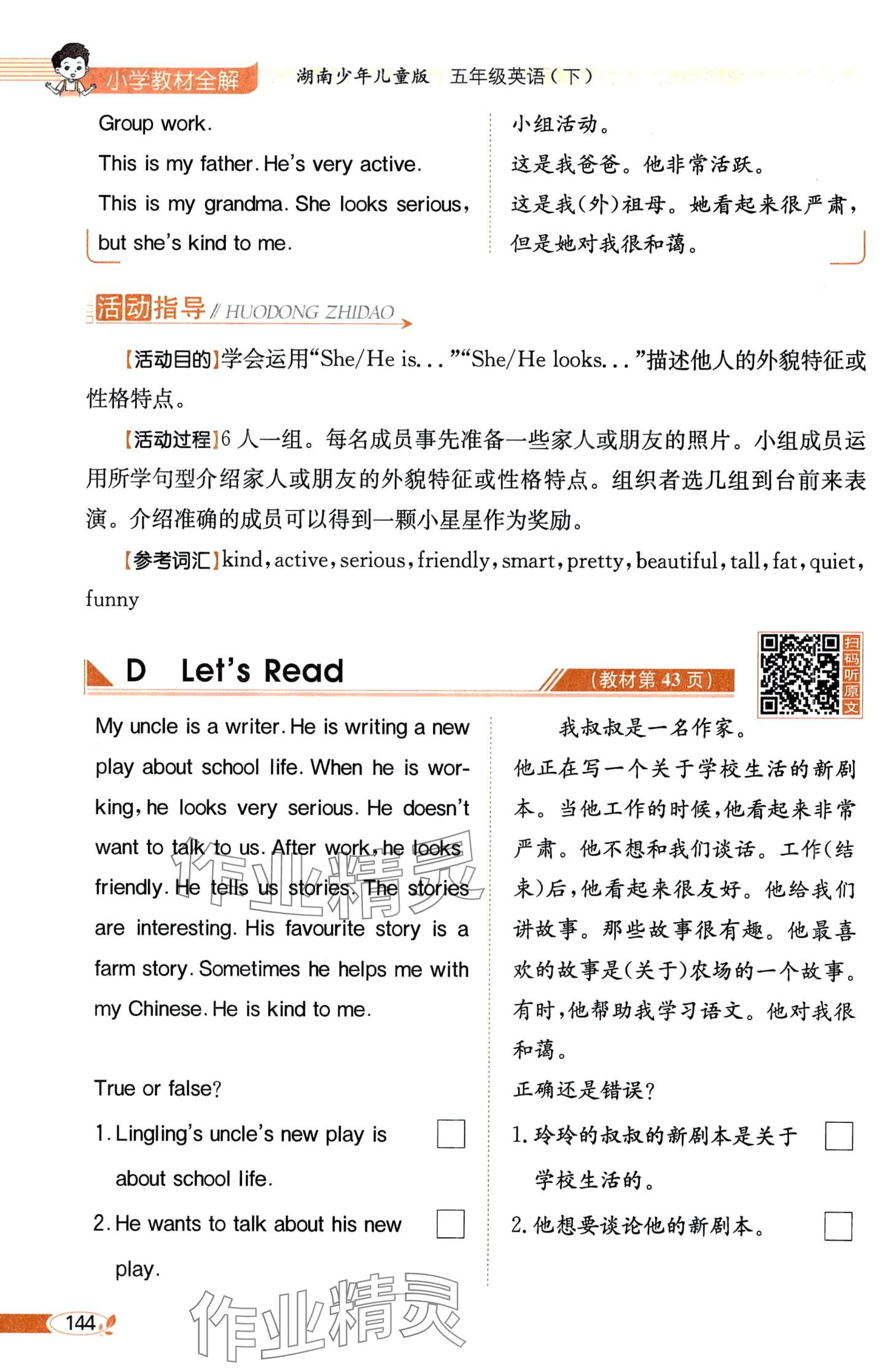 注:目前有些书本章节名称可能整理的还不是很完善,但都是按照顺序排列的,请同学们按照顺序仔细查找。练习册 2024年教材课本五年级英语下册湘少版 答案主要是用来给同学们做完题方便对答案用的,请勿直接抄袭。