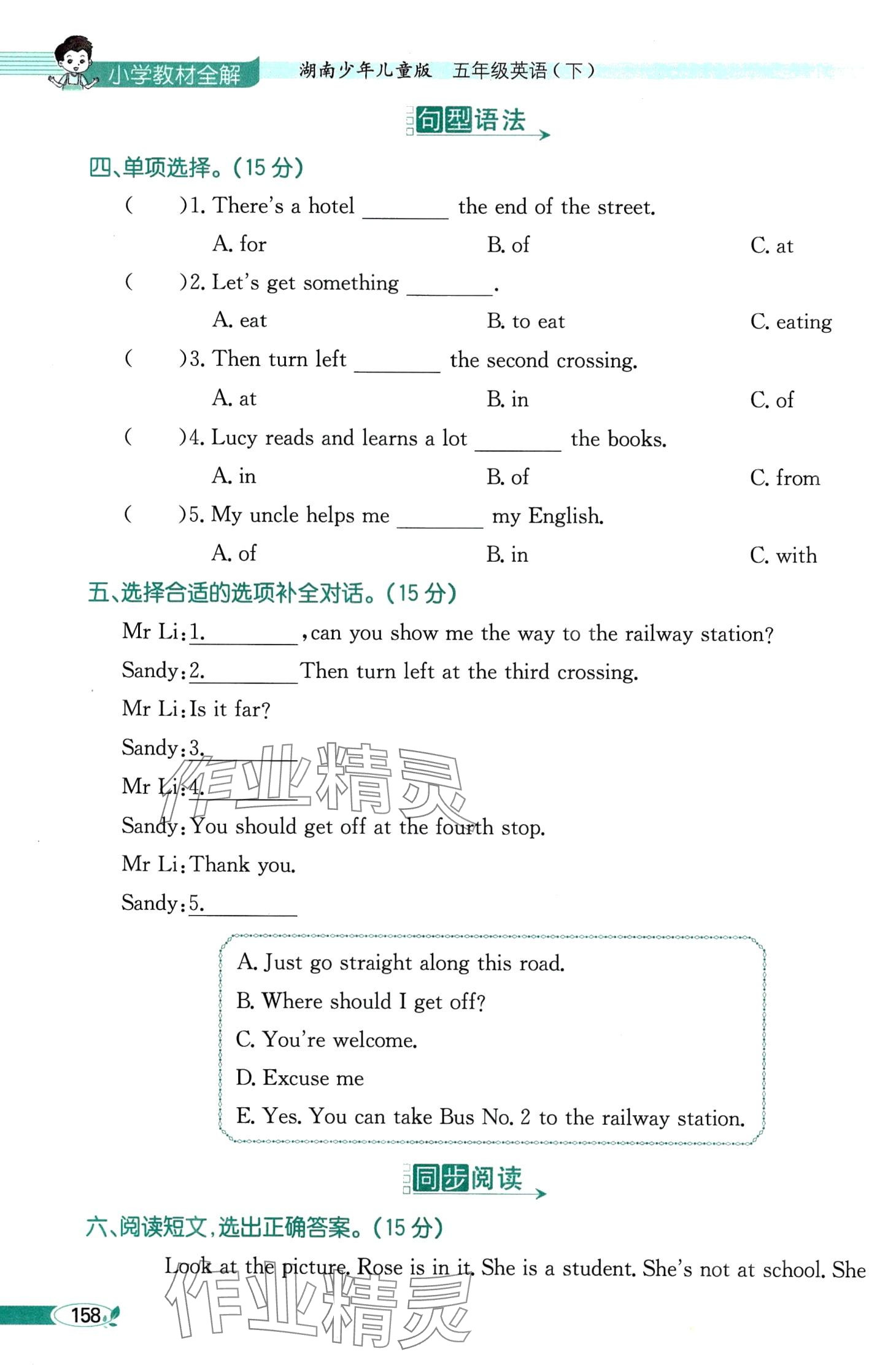 注:目前有些书本章节名称可能整理的还不是很完善,但都是按照顺序排列的,请同学们按照顺序仔细查找。练习册 2024年教材课本五年级英语下册湘少版 答案主要是用来给同学们做完题方便对答案用的,请勿直接抄袭。