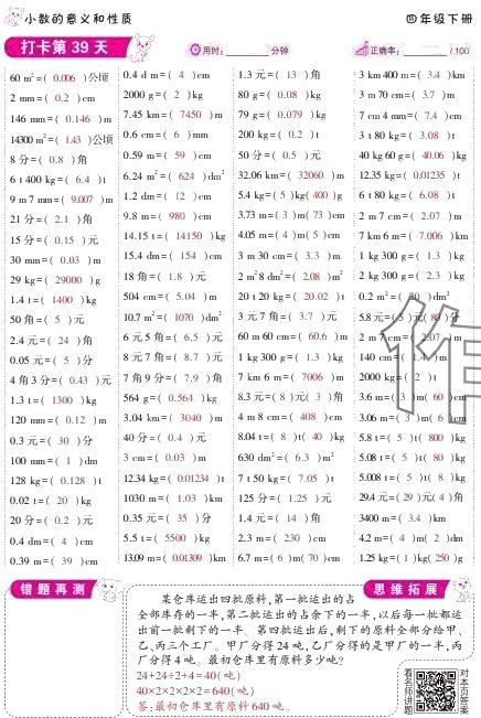 注:目前有些书本章节名称可能整理的还不是很完善,但都是按照顺序排列的,请同学们按照顺序仔细查找。练习册 2024年口算题10000道四年级数学下册人教版 答案主要是用来给同学们做完题方便对答案用的,请勿直接抄袭。