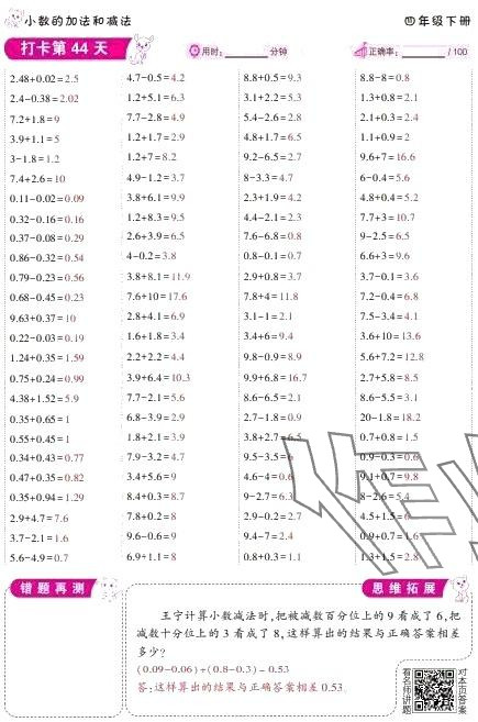 2024年口算题10000道四年级数学下册人教版