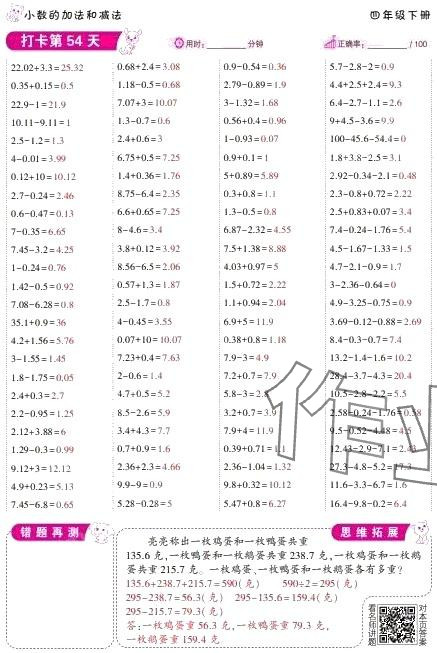 2024年口算题10000道四年级数学下册人教版