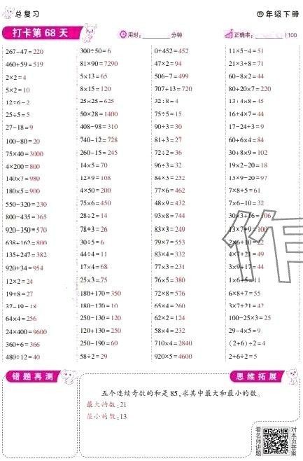 注:目前有些书本章节名称可能整理的还不是很完善,但都是按照顺序排列的,请同学们按照顺序仔细查找。练习册 2024年口算题10000道四年级数学下册人教版 答案主要是用来给同学们做完题方便对答案用的,请勿直接抄袭。
