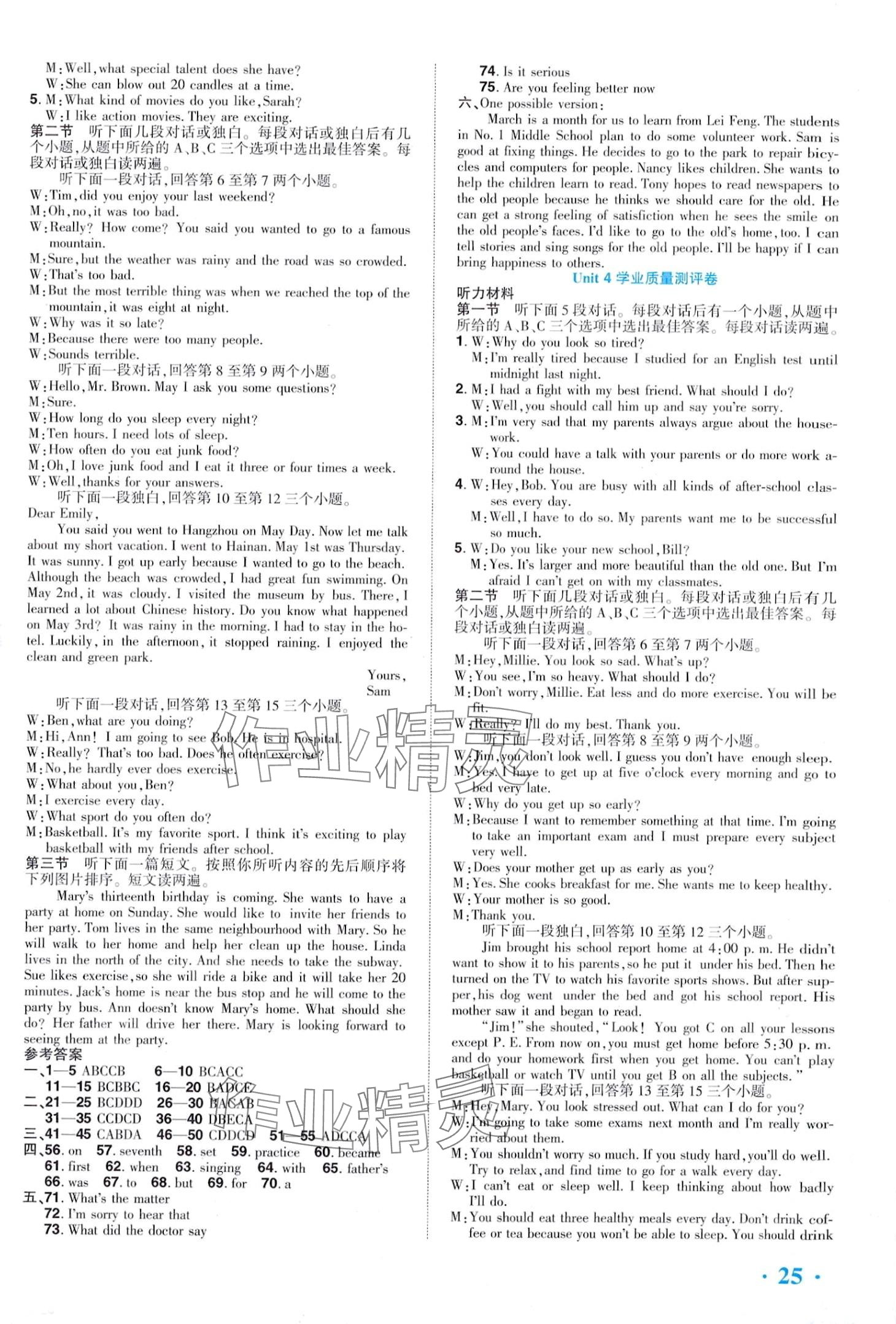 注:目前有些书本章节名称可能整理的还不是很完善,但都是按照顺序排列的,请同学们按照顺序仔细查找。练习册 2024年全程无忧八年级英语下册人教版 答案主要是用来给同学们做完题方便对答案用的,请勿直接抄袭。