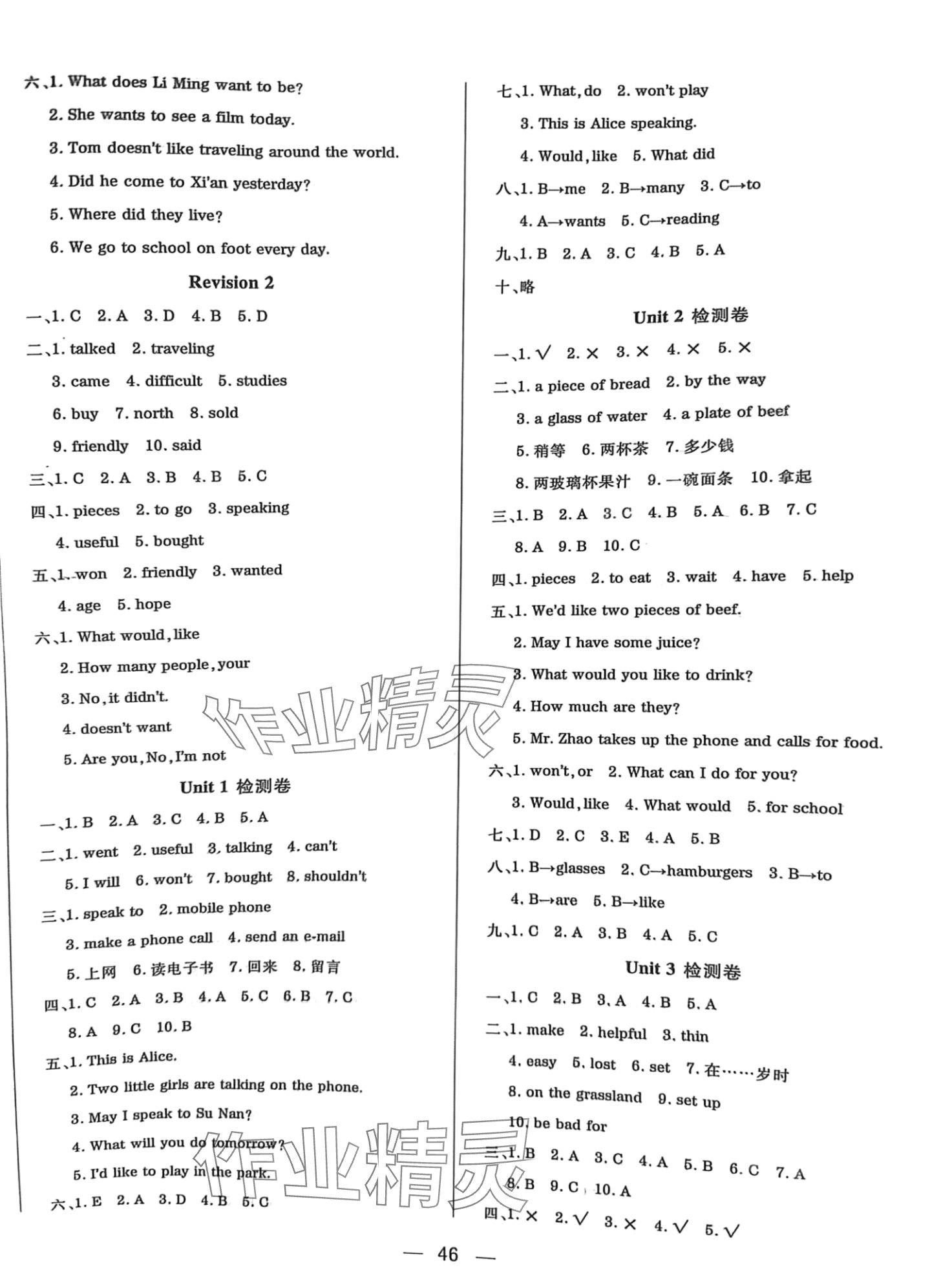注:目前有些书本章节名称可能整理的还不是很完善,但都是按照顺序排列的,请同学们按照顺序仔细查找。练习册 2024年扬帆天天练六年级英语下册陕旅版 答案主要是用来给同学们做完题方便对答案用的,请勿直接抄袭。