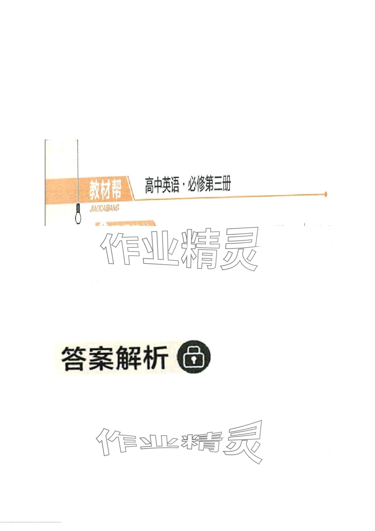 注:目前有些书本章节名称可能整理的还不是很完善,但都是按照顺序排列的,请同学们按照顺序仔细查找。练习册 2024年教材课本高中英语必修第三册人教版 答案主要是用来给同学们做完题方便对答案用的,请勿直接抄袭。