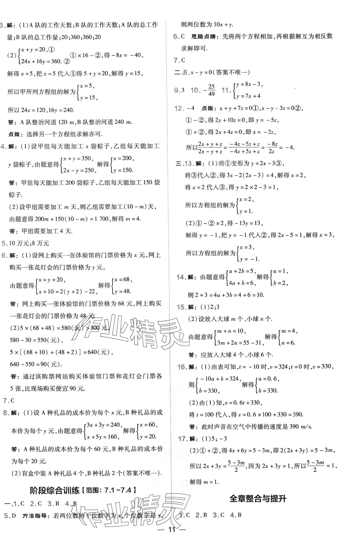 注:目前有些书本章节名称可能整理的还不是很完善,但都是按照顺序排列的,请同学们按照顺序仔细查找。练习册 2024年点拨训练七年级数学下册人教版山西专版 答案主要是用来给同学们做完题方便对答案用的,请勿直接抄袭。