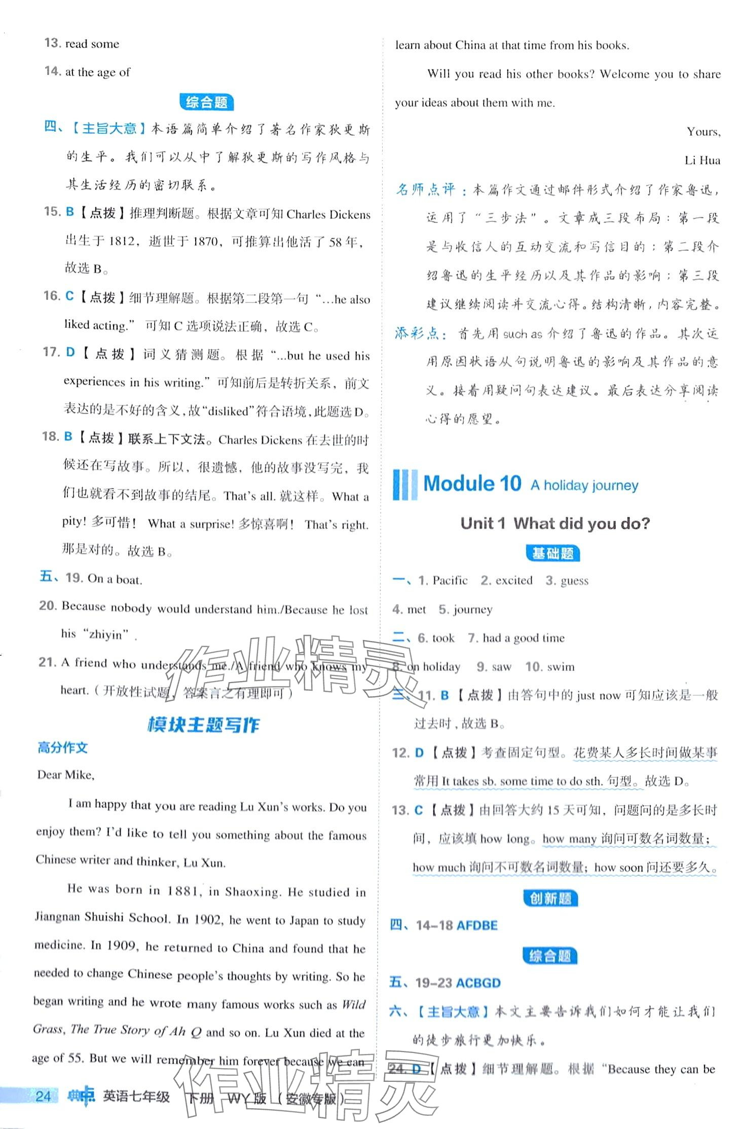 注:目前有些书本章节名称可能整理的还不是很完善,但都是按照顺序排列的,请同学们按照顺序仔细查找。练习册 2024年综合应用创新题典中点七年级下册外研版安徽专版 答案主要是用来给同学们做完题方便对答案用的,请勿直接抄袭。