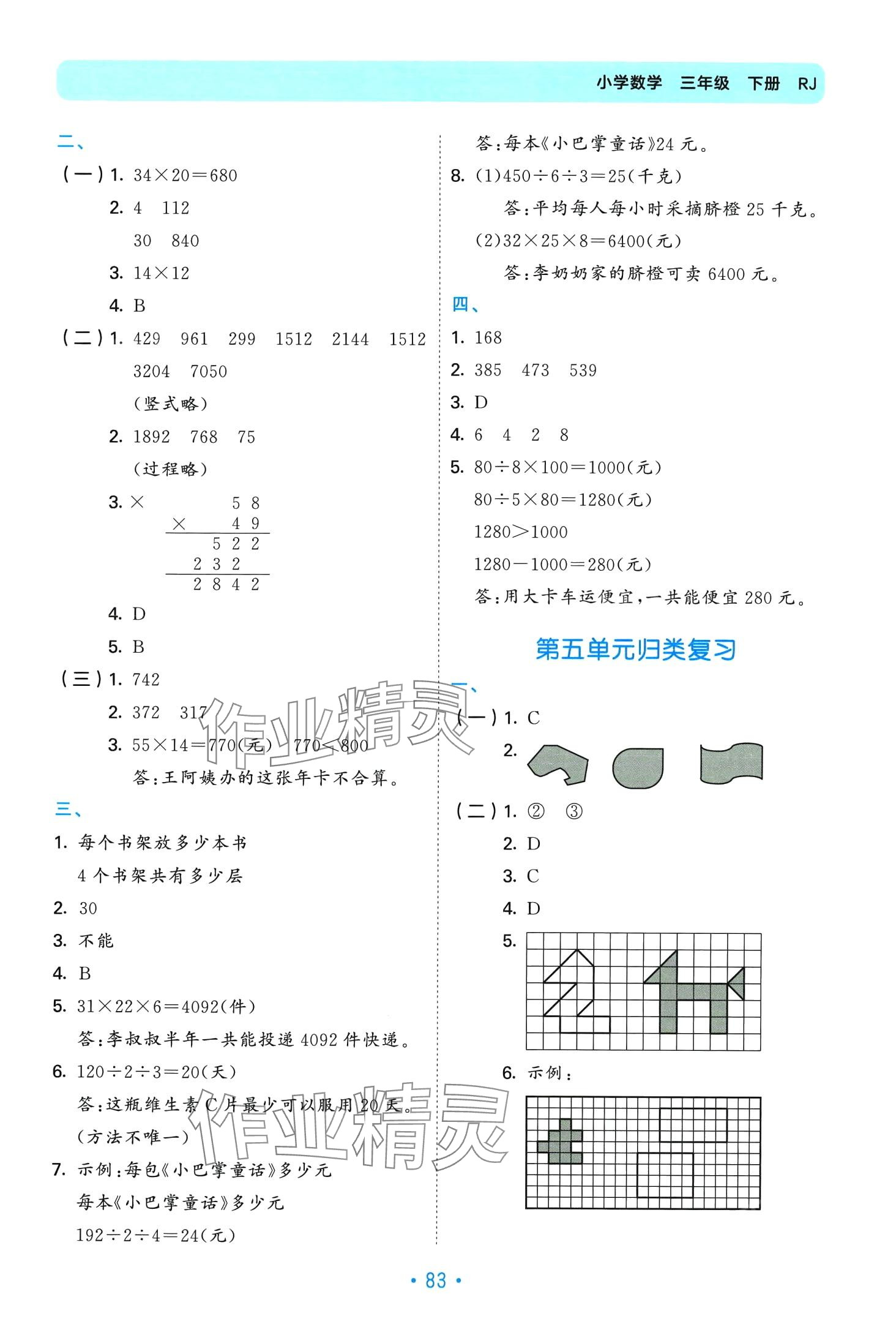 注:目前有些书本章节名称可能整理的还不是很完善,但都是按照顺序排列的,请同学们按照顺序仔细查找。练习册 2024年53单元归类复习三年级数学下册人教版 答案主要是用来给同学们做完题方便对答案用的,请勿直接抄袭。