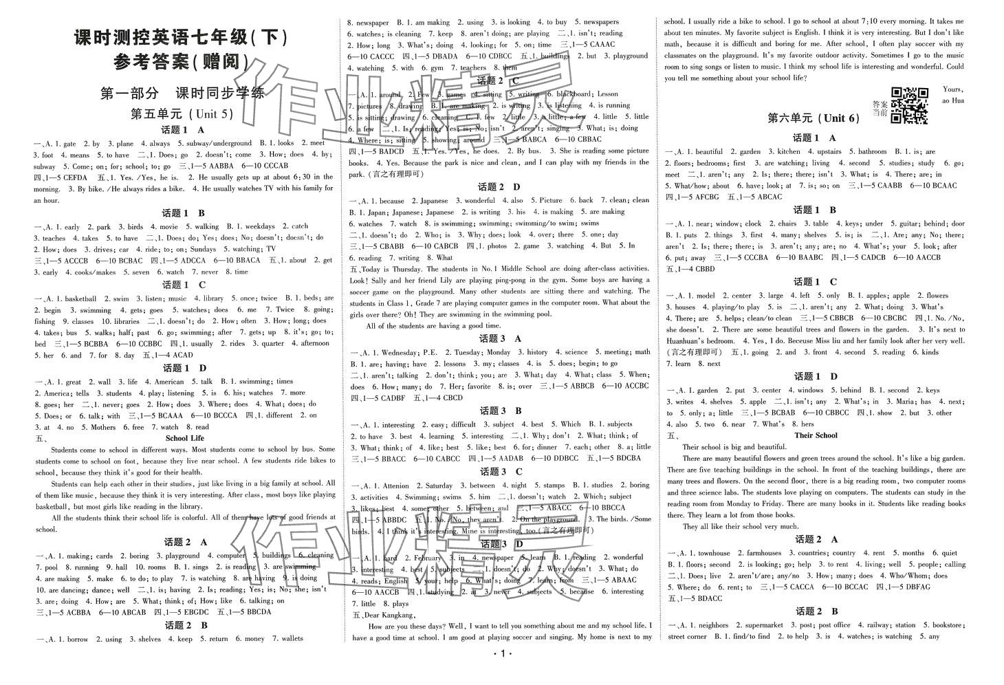 注:目前有些书本章节名称可能整理的还不是很完善,但都是按照顺序排列的,请同学们按照顺序仔细查找。练习册 2024年征服英语课时测控七年级下册人教版 答案主要是用来给同学们做完题方便对答案用的,请勿直接抄袭。