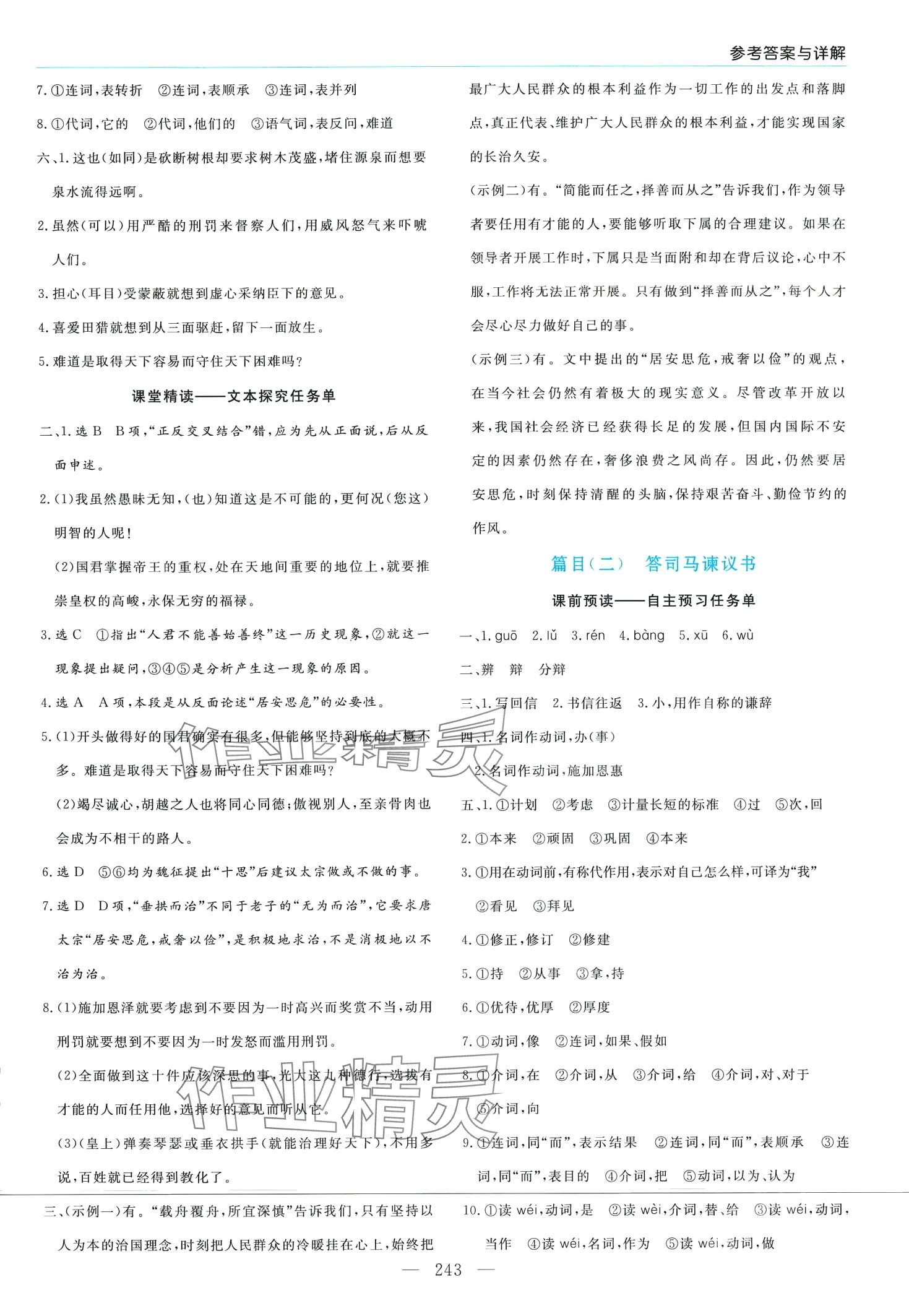 注:目前有些书本章节名称可能整理的还不是很完善,但都是按照顺序排列的,请同学们按照顺序仔细查找。练习册 2024年新课程学习指导高中语文必修下册人教版 答案主要是用来给同学们做完题方便对答案用的,请勿直接抄袭。