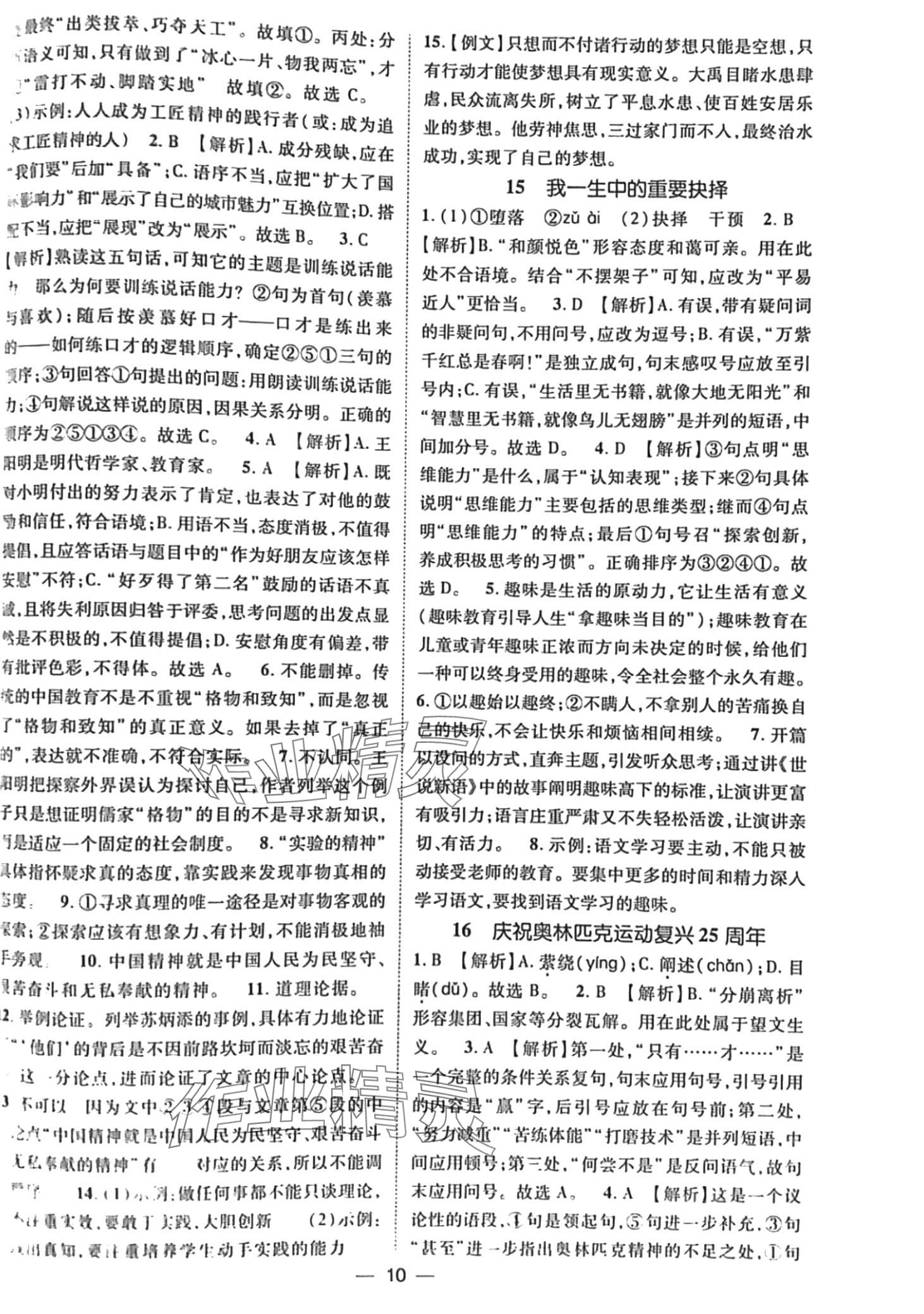 注:目前有些书本章节名称可能整理的还不是很完善,但都是按照顺序排列的,请同学们按照顺序仔细查找。练习册 2024年精英新课堂八年级语文下册人教版 答案主要是用来给同学们做完题方便对答案用的,请勿直接抄袭。
