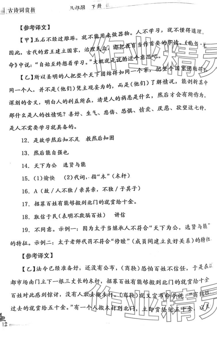 《2024年古诗词赏析陕西旅游出版社八年级下册》