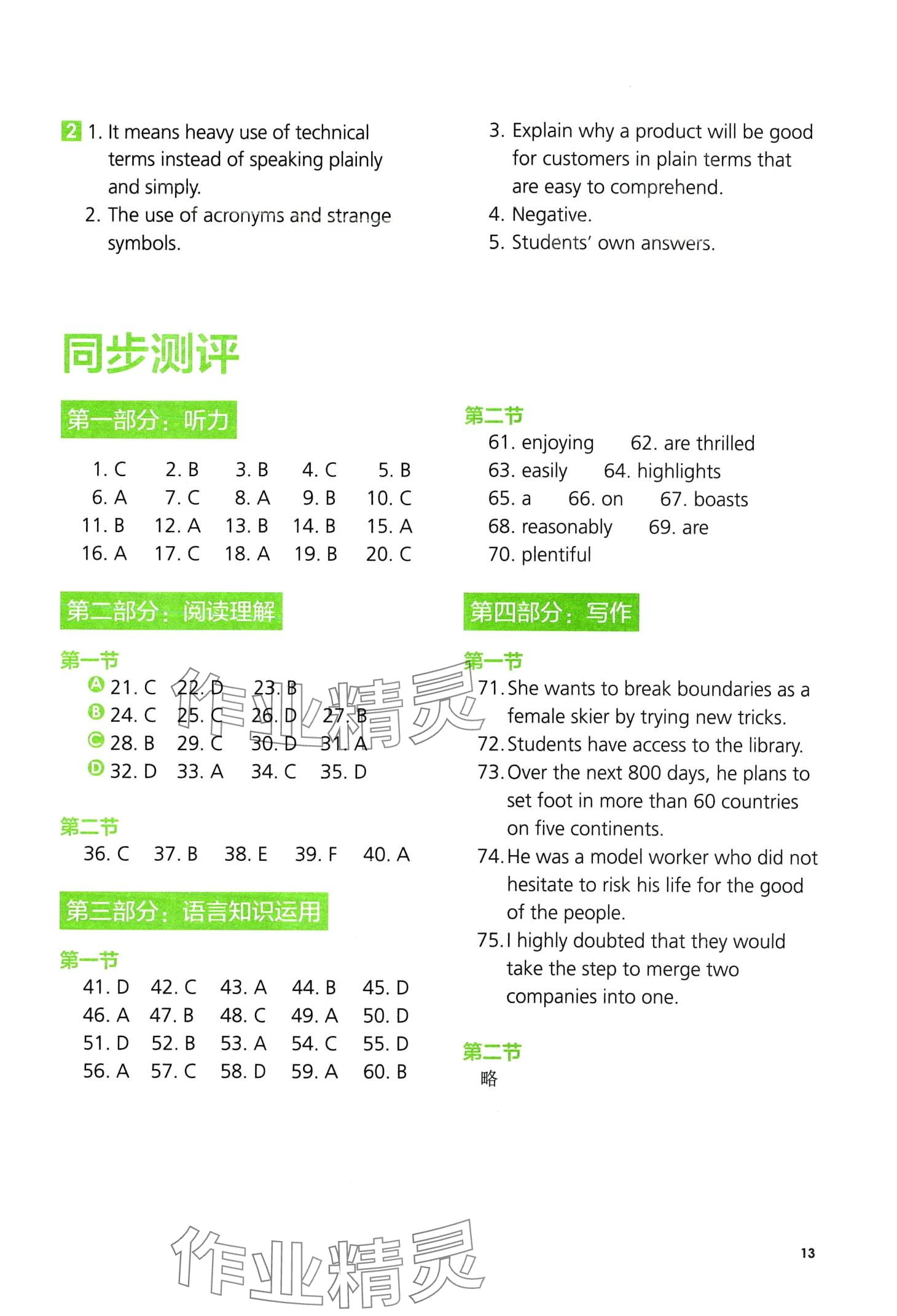 注:目前有些书本章节名称可能整理的还不是很完善,但都是按照顺序排列的,请同学们按照顺序仔细查找。练习册 2024年同步练习册外语教学与研究出版社高中英语选择性必修第二册 答案主要是用来给同学们做完题方便对答案用的,请勿直接抄袭。