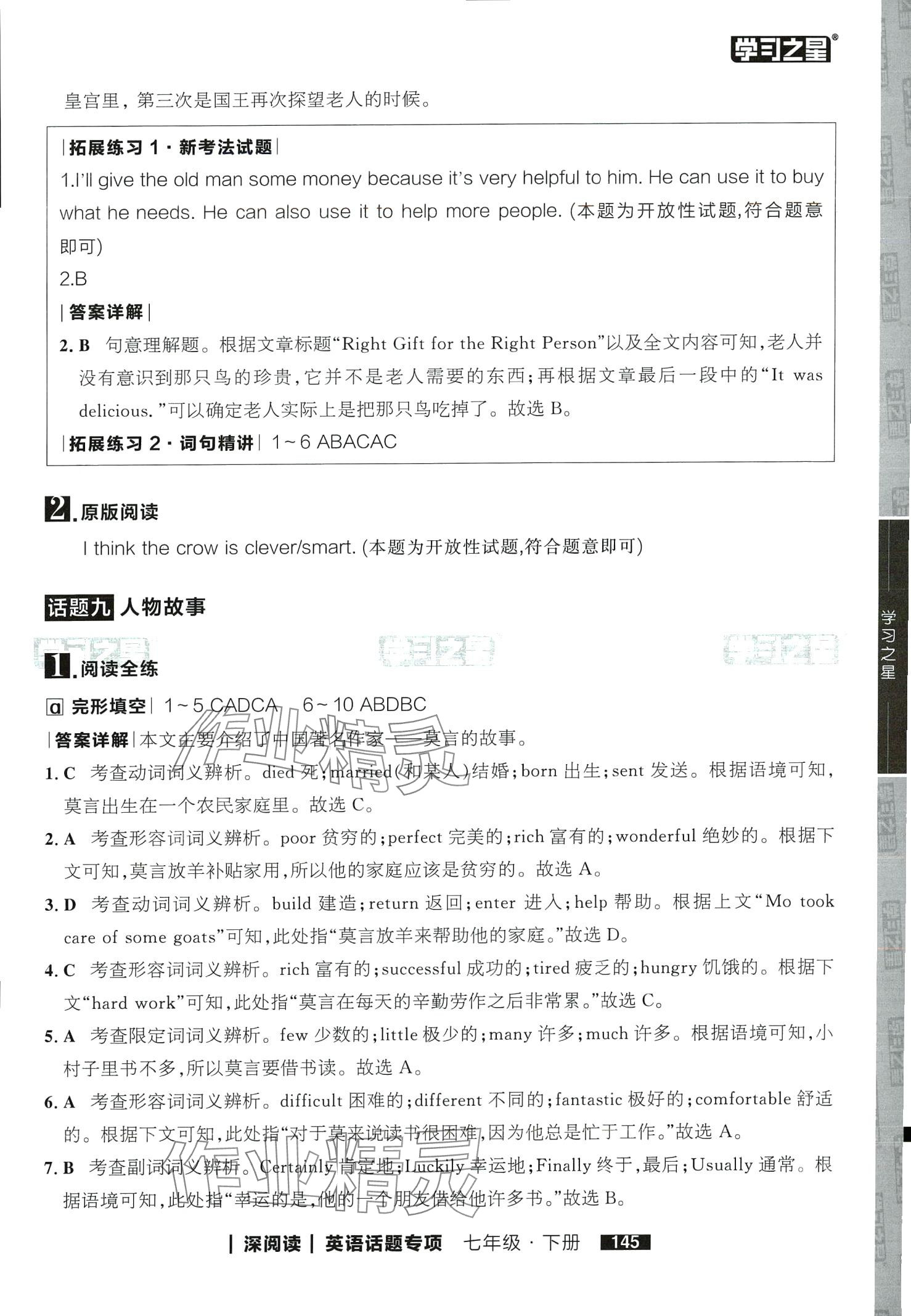 2024年学习之星深阅读七年级英语下册