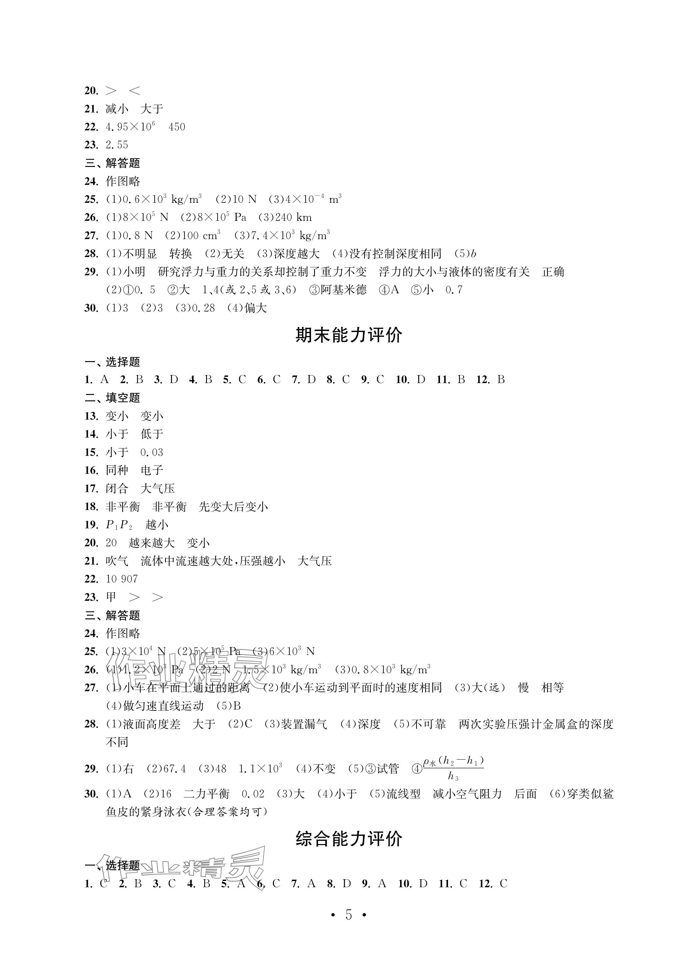 注:目前有些书本章节名称可能整理的还不是很完善,但都是按照顺序排列的,请同学们按照顺序仔细查找。练习册 2024年配套单元评价八年级物理下册苏科版 答案主要是用来给同学们做完题方便对答案用的,请勿直接抄袭。
