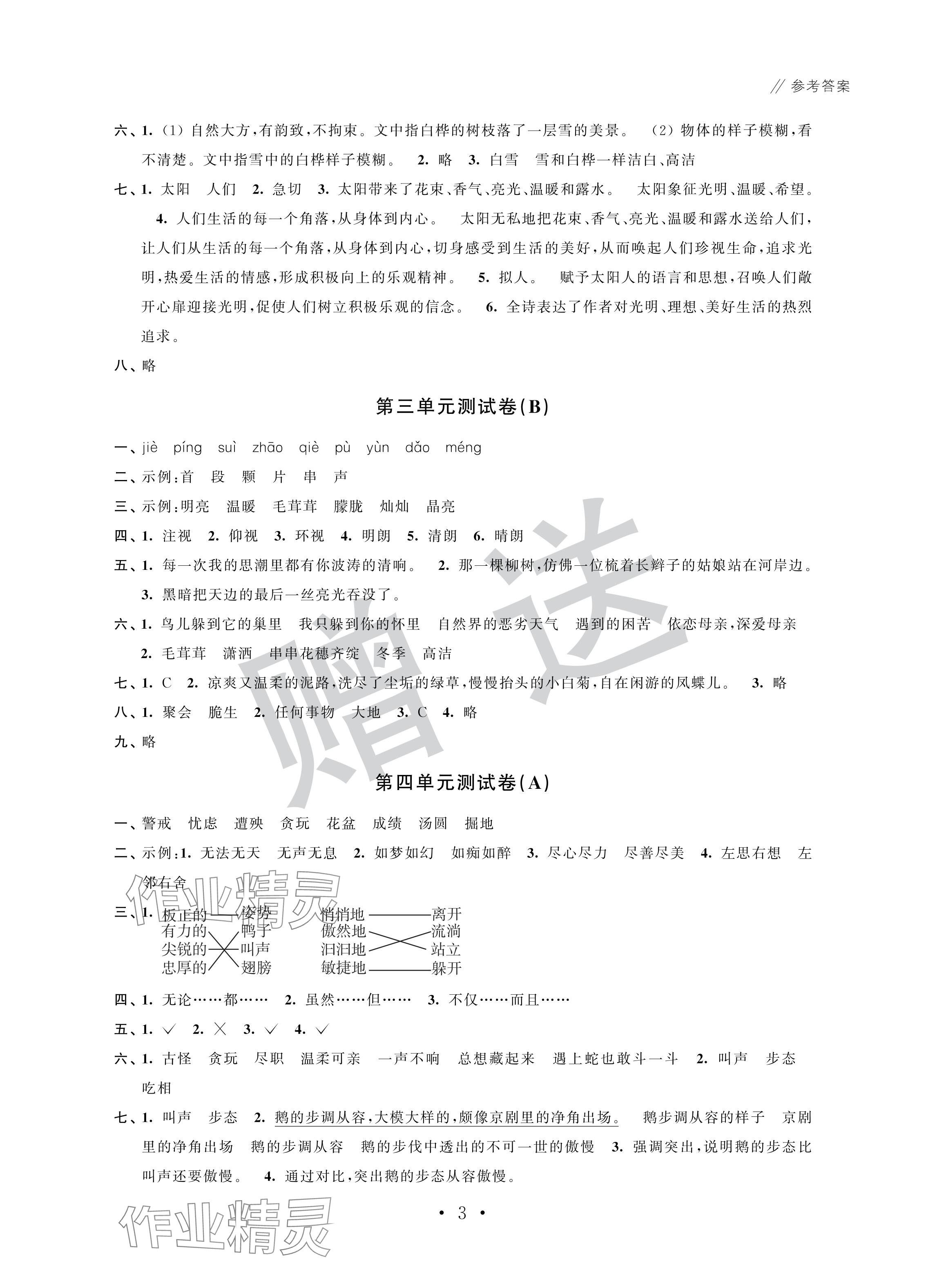 注:目前有些书本章节名称可能整理的还不是很完善,但都是按照顺序排列的,请同学们按照顺序仔细查找。练习册 2024年自主学习与测评单元活页卷四年级语文下册人教版 答案主要是用来给同学们做完题方便对答案用的,请勿直接抄袭。
