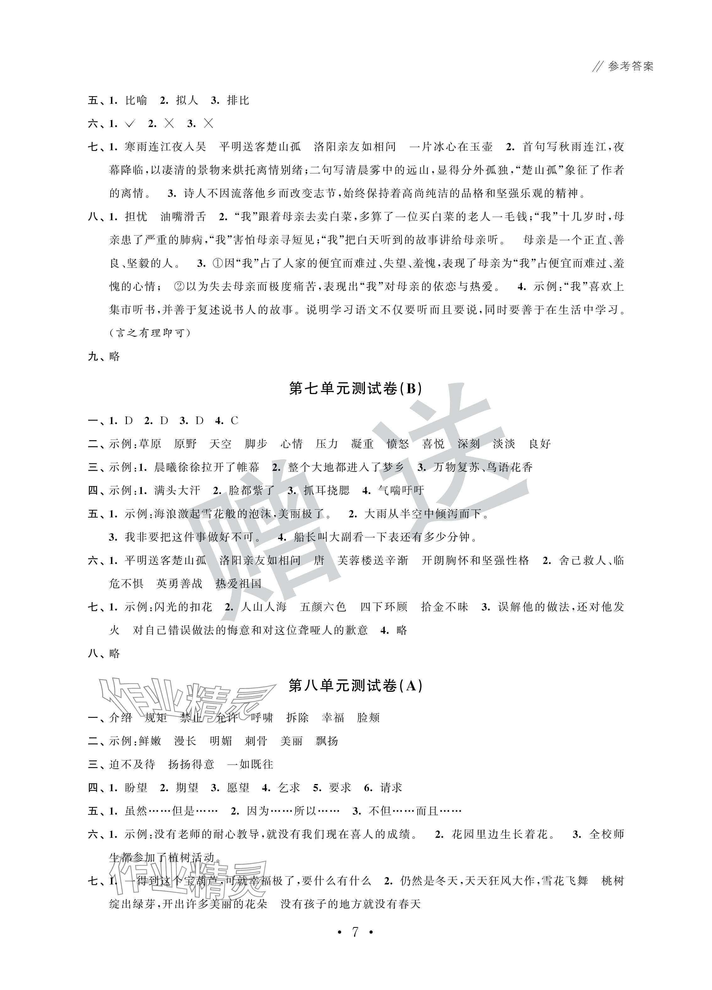 注:目前有些书本章节名称可能整理的还不是很完善,但都是按照顺序排列的,请同学们按照顺序仔细查找。练习册 2024年自主学习与测评单元活页卷四年级语文下册人教版 答案主要是用来给同学们做完题方便对答案用的,请勿直接抄袭。