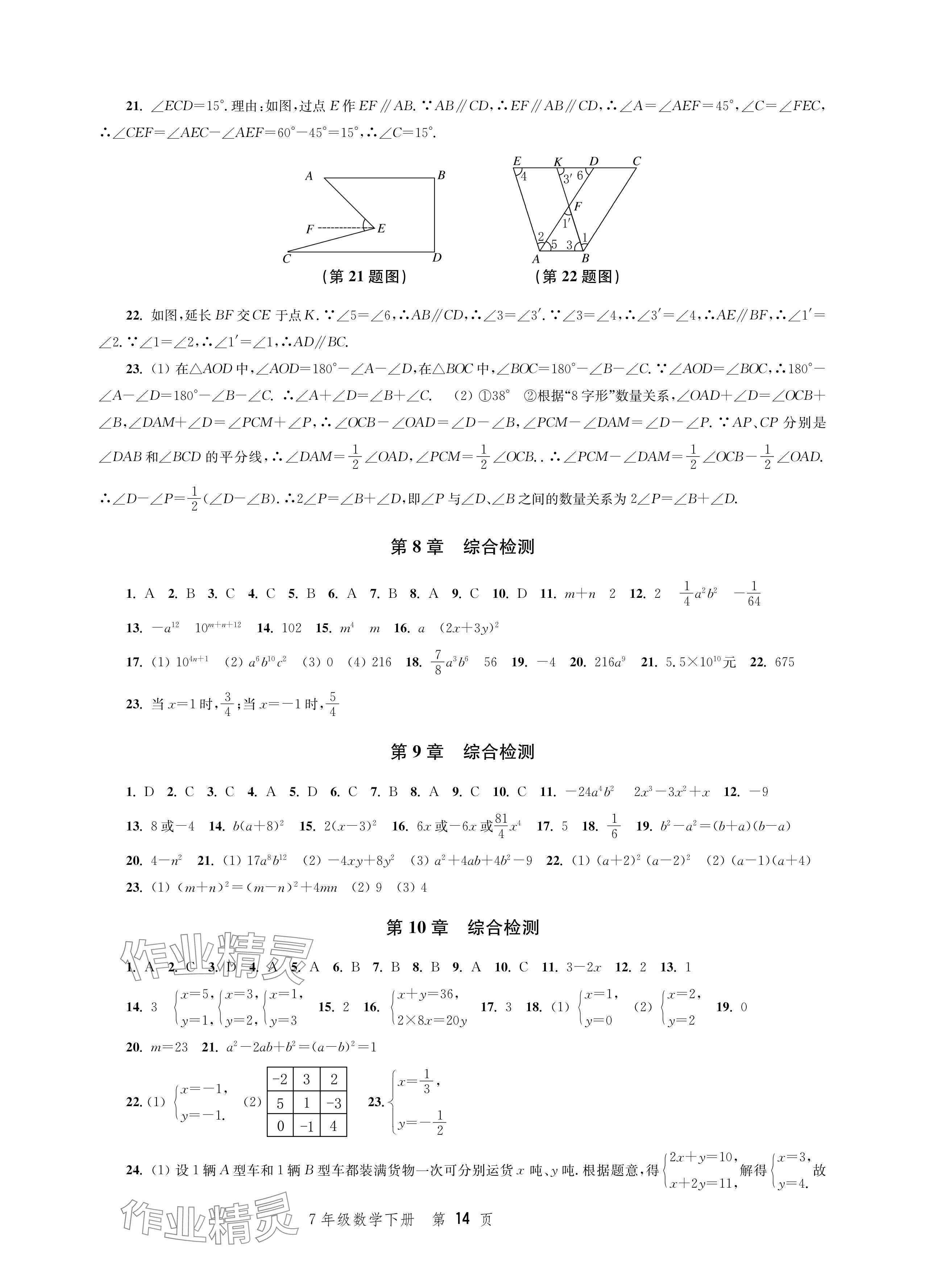 注:目前有些书本章节名称可能整理的还不是很完善,但都是按照顺序排列的,请同学们按照顺序仔细查找。练习册 2024年导学与评价方案七年级数学下册苏科版 答案主要是用来给同学们做完题方便对答案用的,请勿直接抄袭。
