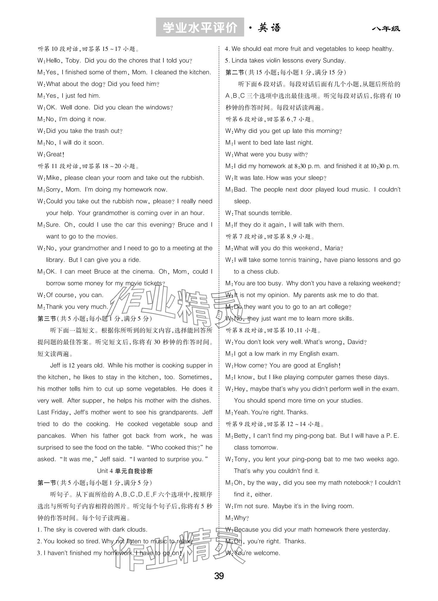 注:目前有些书本章节名称可能整理的还不是很完善,但都是按照顺序排列的,请同学们按照顺序仔细查找。练习册 2024年学业水平评价同步检测卷八年级英语下册人教版 答案主要是用来给同学们做完题方便对答案用的,请勿直接抄袭。