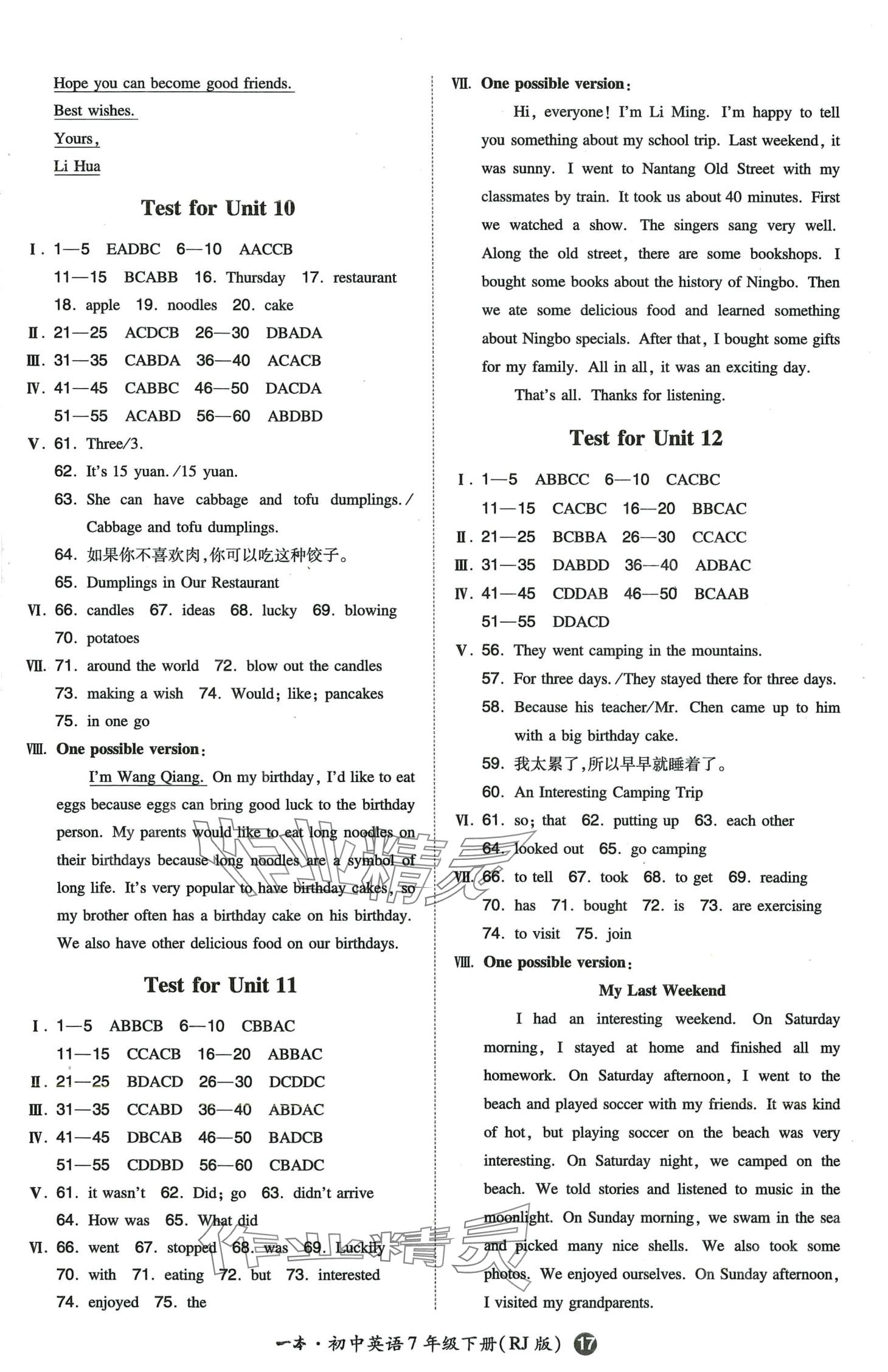 注:目前有些书本章节名称可能整理的还不是很完善,但都是按照顺序排列的,请同学们按照顺序仔细查找。练习册 2024年一本七年级英语下册人教版 答案主要是用来给同学们做完题方便对答案用的,请勿直接抄袭。