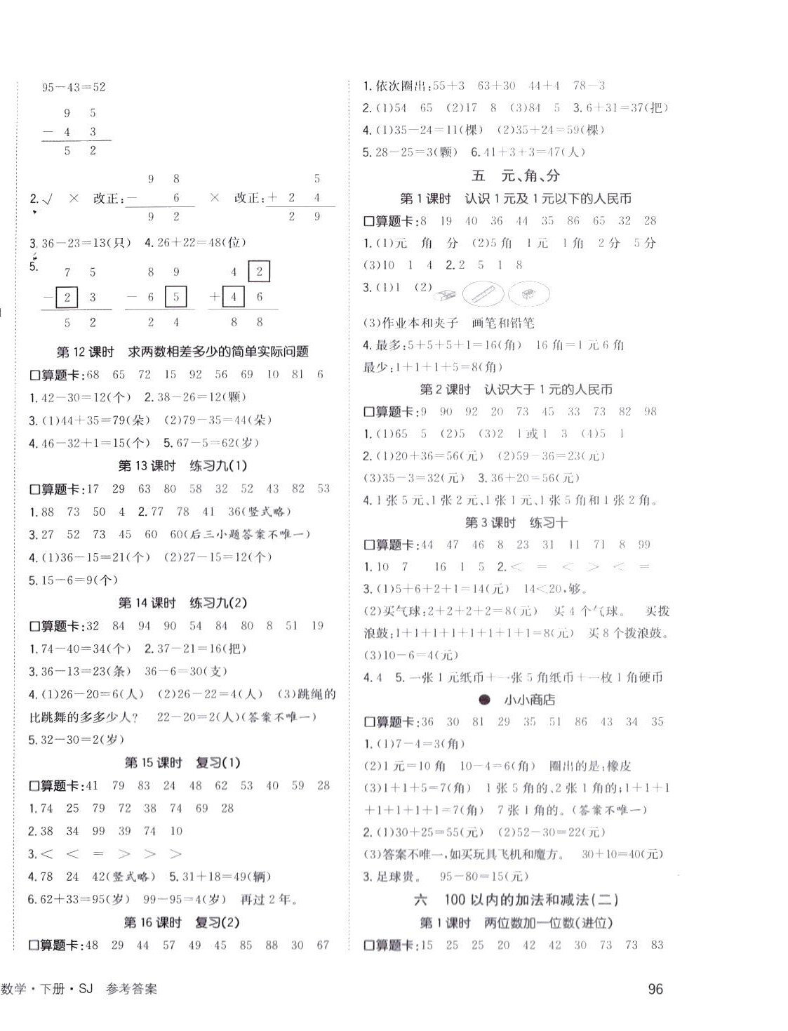 注:目前有些书本章节名称可能整理的还不是很完善,但都是按照顺序排列的,请同学们按照顺序仔细查找。练习册 2024年英才小状元一年级数学下册苏教版 答案主要是用来给同学们做完题方便对答案用的,请勿直接抄袭。