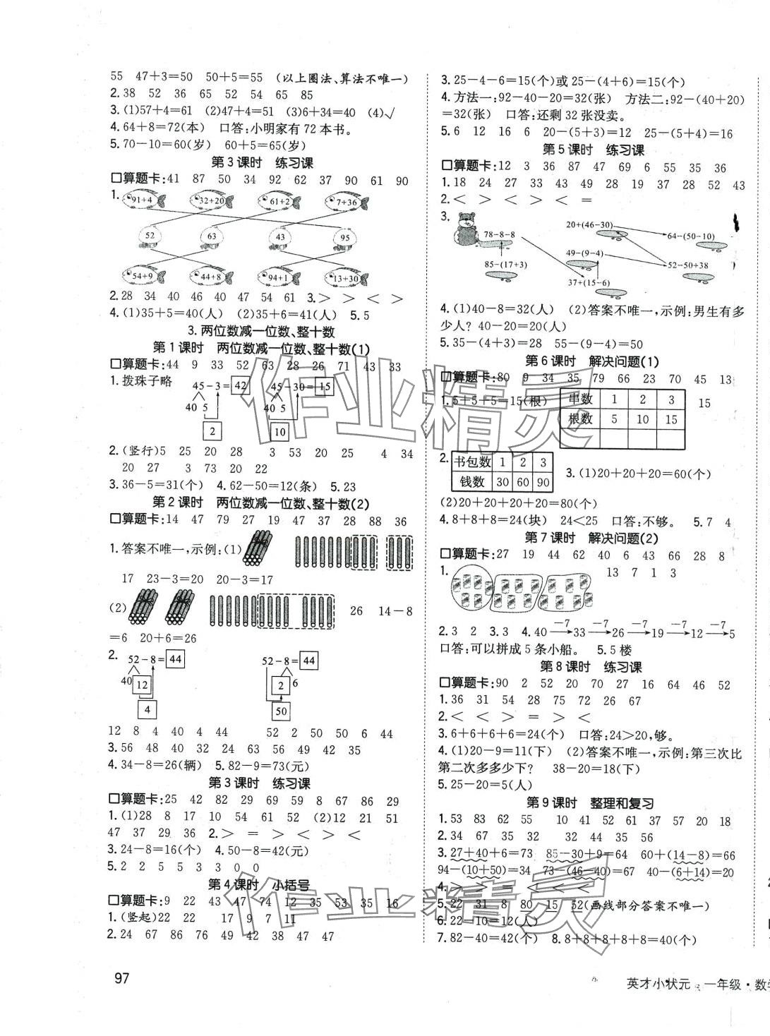 注:目前有些书本章节名称可能整理的还不是很完善,但都是按照顺序排列的,请同学们按照顺序仔细查找。练习册 2024年英才小状元一年级数学下册人教版 答案主要是用来给同学们做完题方便对答案用的,请勿直接抄袭。