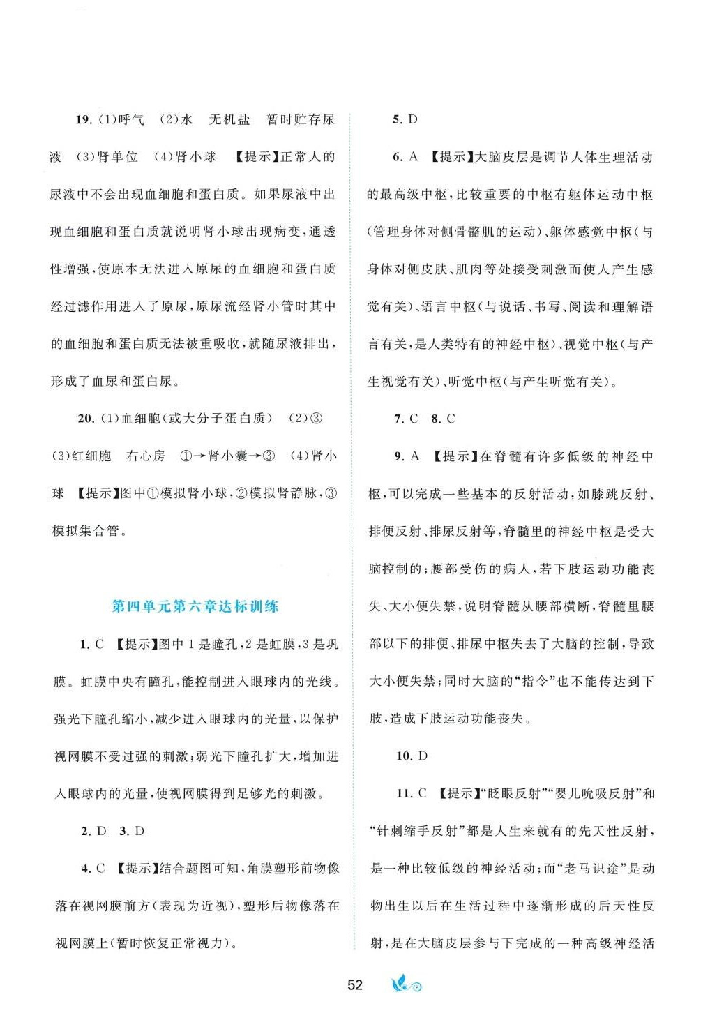 注:目前有些书本章节名称可能整理的还不是很完善,但都是按照顺序排列的,请同学们按照顺序仔细查找。练习册 2024年新课程学习与测评单元双测七年级生物下册人教版A版 答案主要是用来给同学们做完题方便对答案用的,请勿直接抄袭。