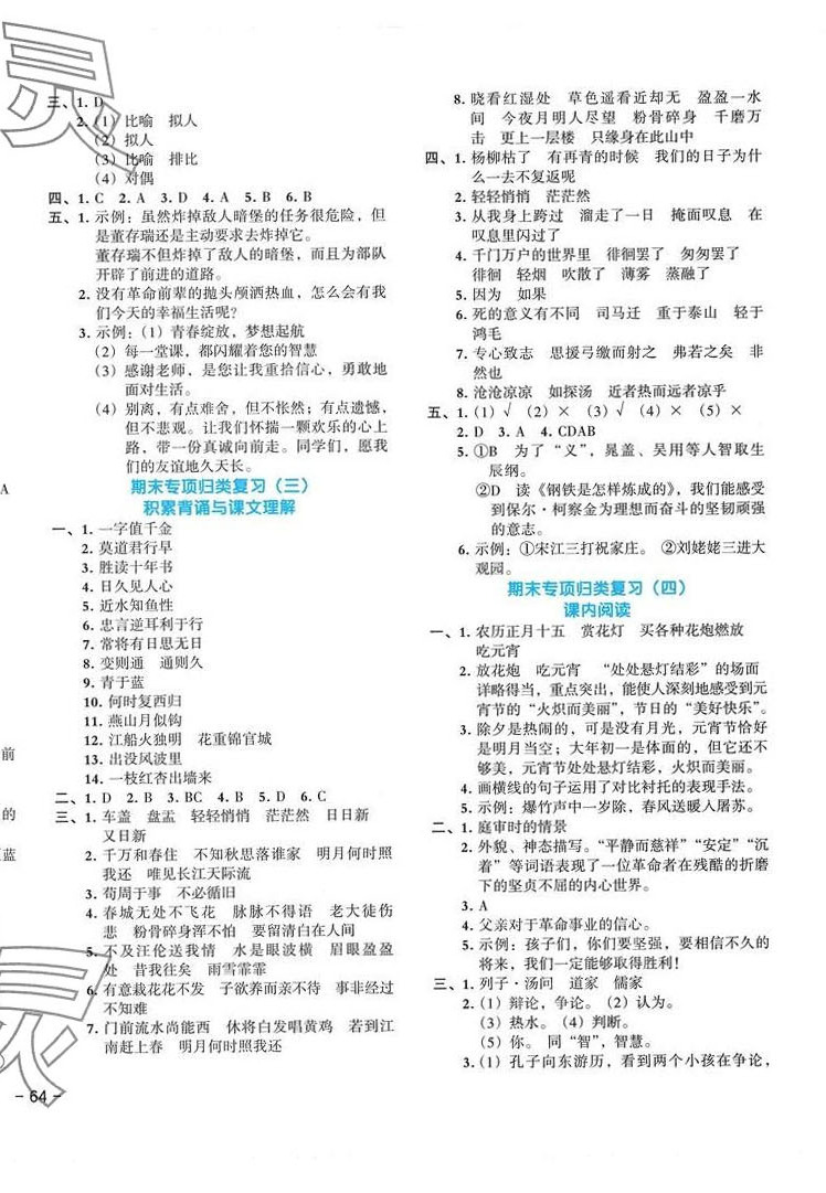 注:目前有些书本章节名称可能整理的还不是很完善,但都是按照顺序排列的,请同学们按照顺序仔细查找。练习册 2024年全优单元大卷六年级语文下册人教版重庆专版 答案主要是用来给同学们做完题方便对答案用的,请勿直接抄袭。