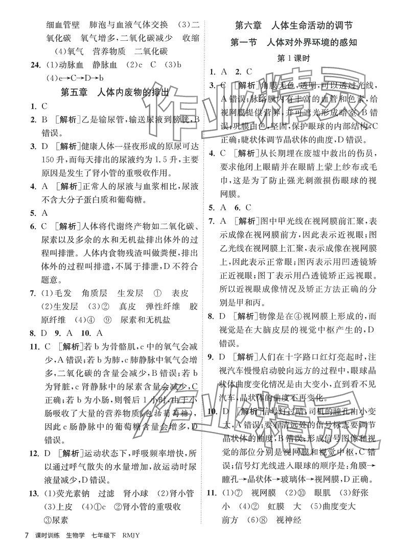 注:目前有些书本章节名称可能整理的还不是很完善,但都是按照顺序排列的,请同学们按照顺序仔细查找。练习册 2024年课时训练江苏人民出版社七年级生物下册人教版 答案主要是用来给同学们做完题方便对答案用的,请勿直接抄袭。