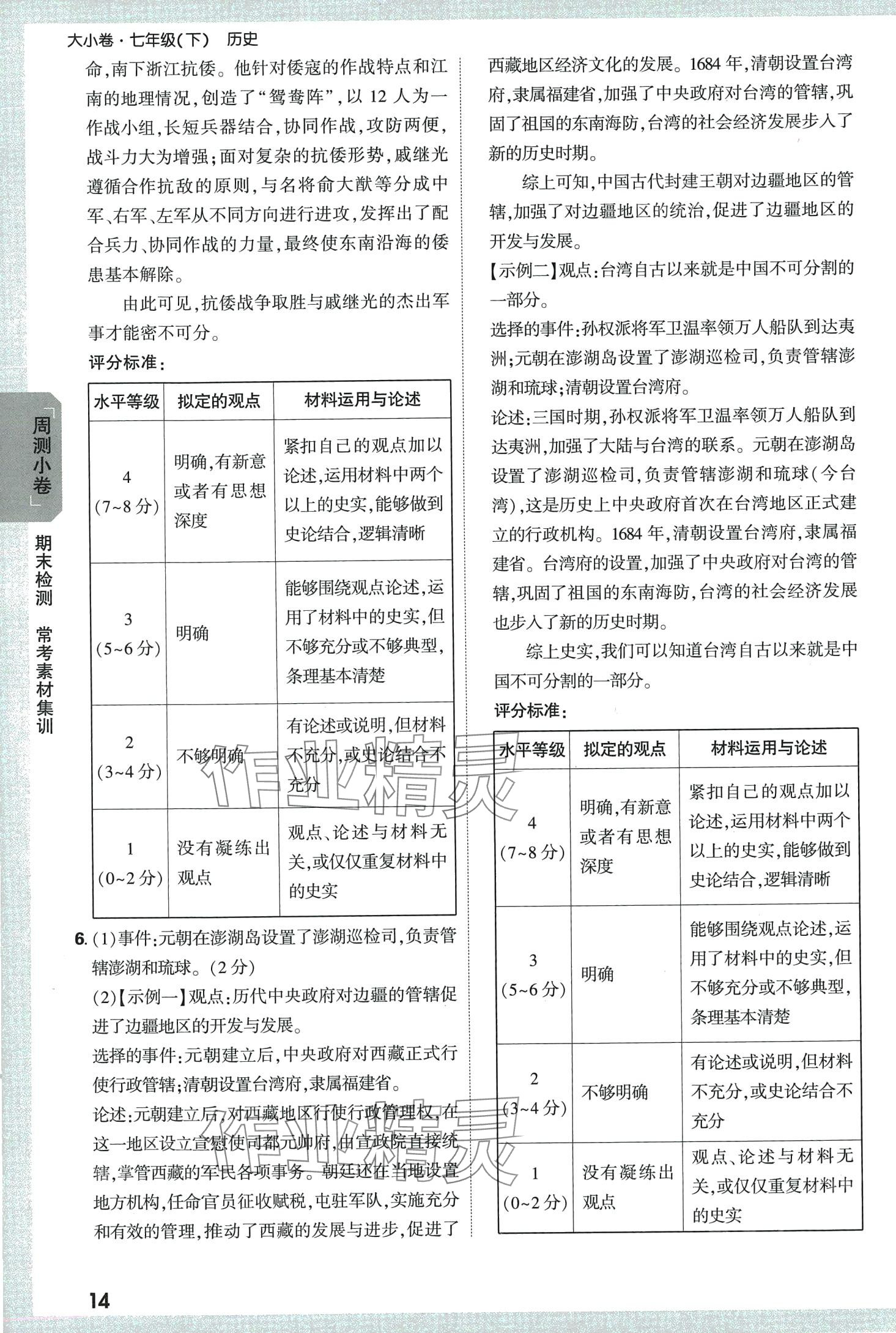 《2024年万唯中考大小卷七年级历史下册人教版》