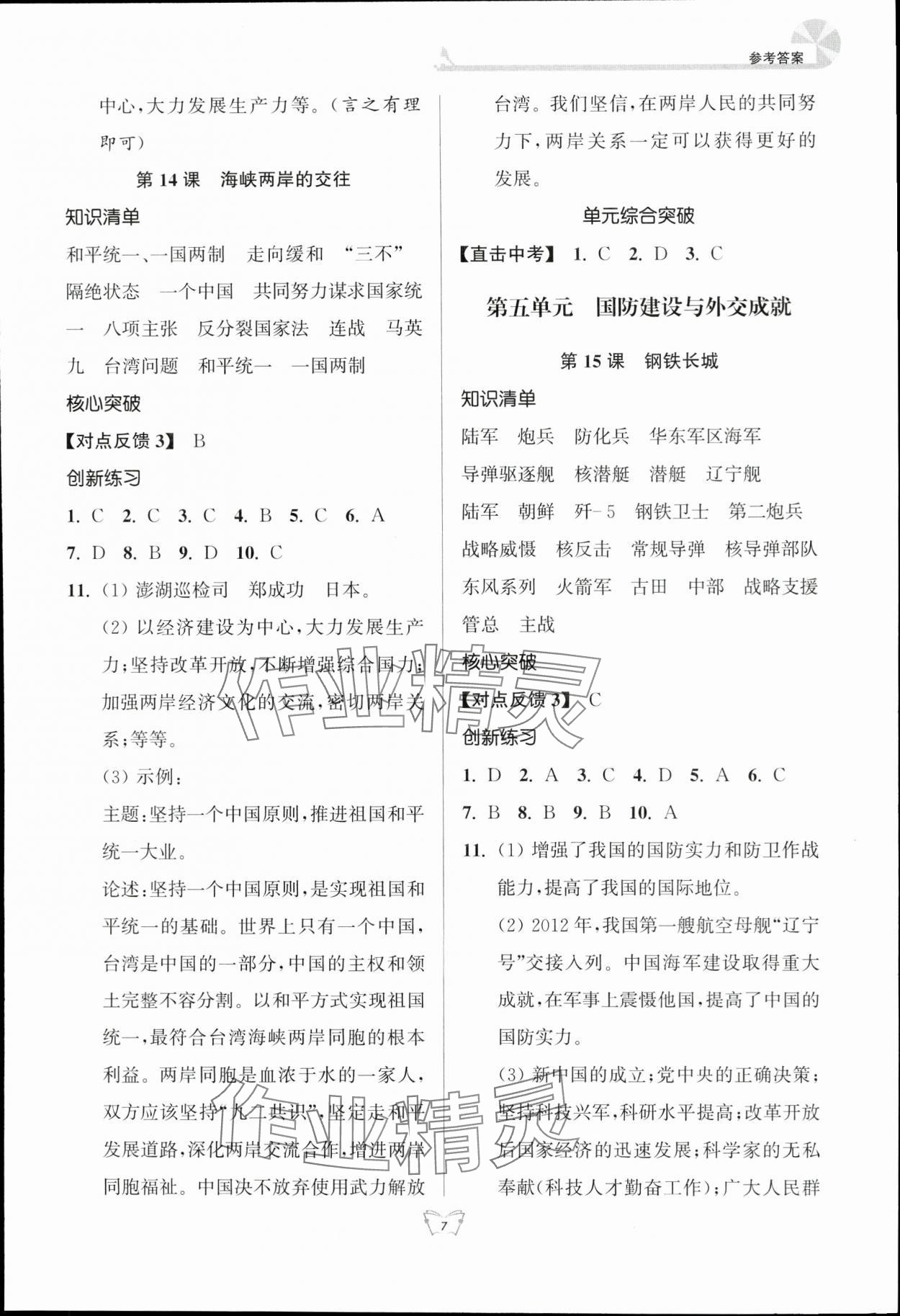 注:目前有些书本章节名称可能整理的还不是很完善,但都是按照顺序排列的,请同学们按照顺序仔细查找。练习册 2024年创新课时作业本江苏凤凰少年儿童出版社八年级历史下册人教版 答案主要是用来给同学们做完题方便对答案用的,请勿直接抄袭。
