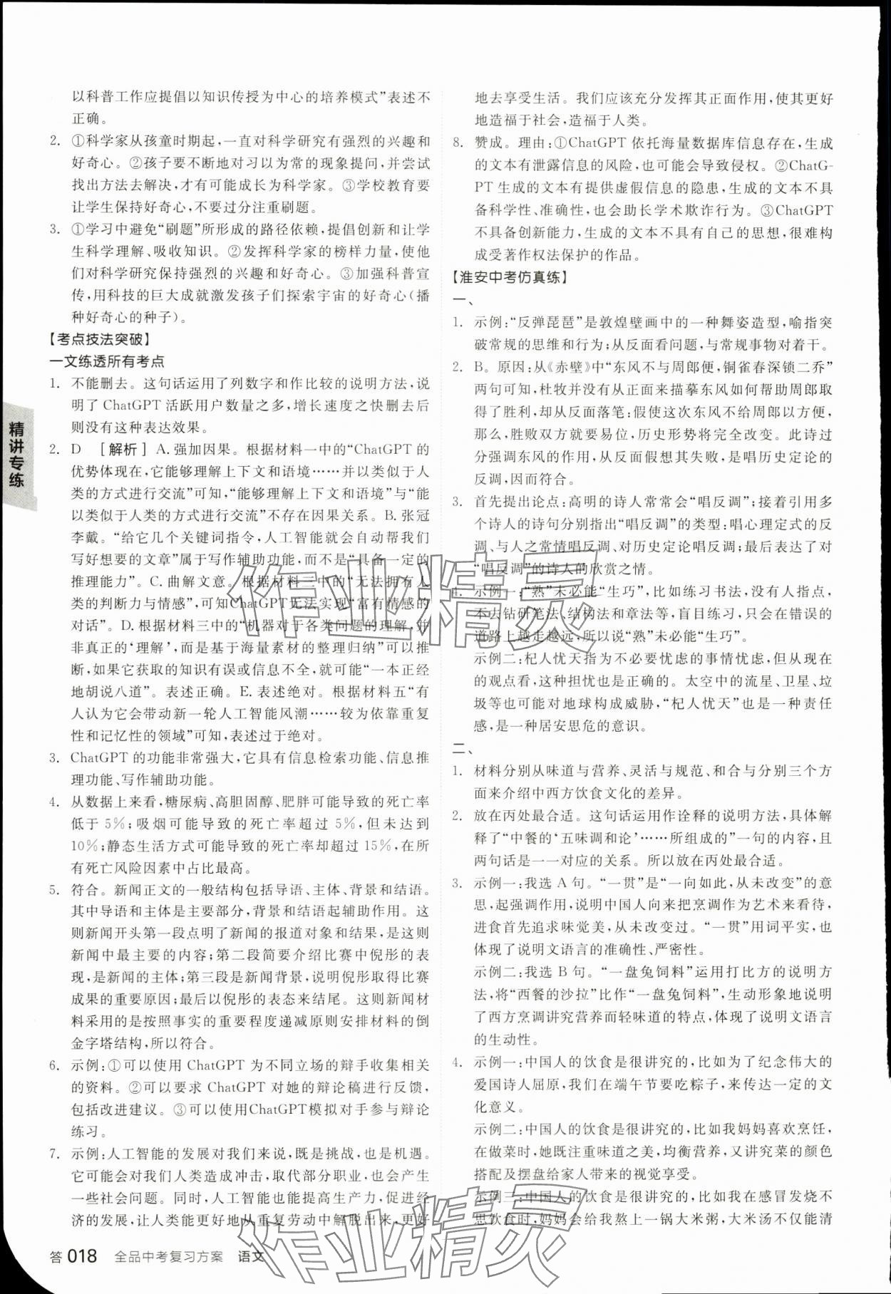 注:目前有些书本章节名称可能整理的还不是很完善,但都是按照顺序排列的,请同学们按照顺序仔细查找。练习册 2024年全品中考复习方案语文淮安专版 答案主要是用来给同学们做完题方便对答案用的,请勿直接抄袭。