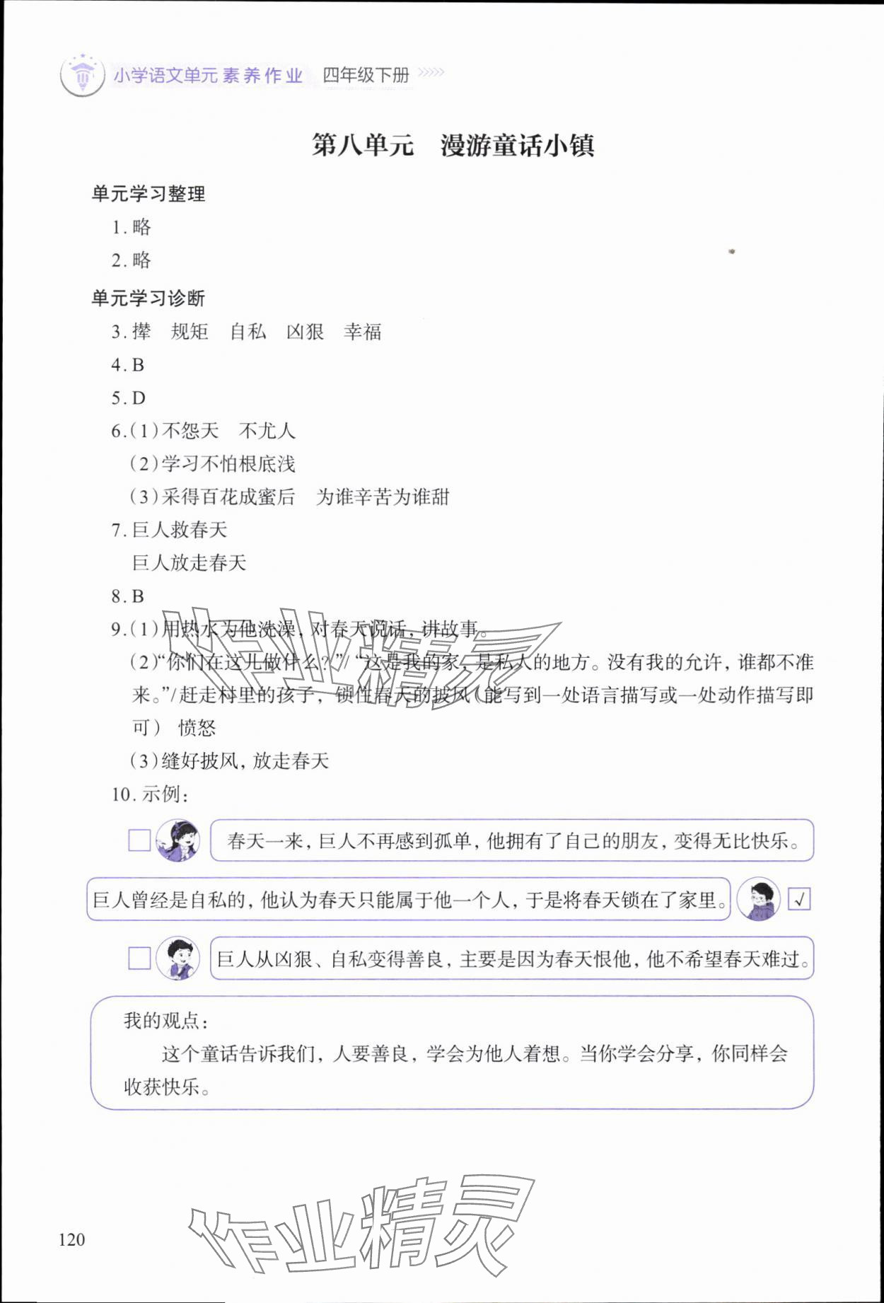 注:目前有些书本章节名称可能整理的还不是很完善,但都是按照顺序排列的,请同学们按照顺序仔细查找。练习册 2024年小学单元素养作业四年级语文下册人教版 答案主要是用来给同学们做完题方便对答案用的,请勿直接抄袭。