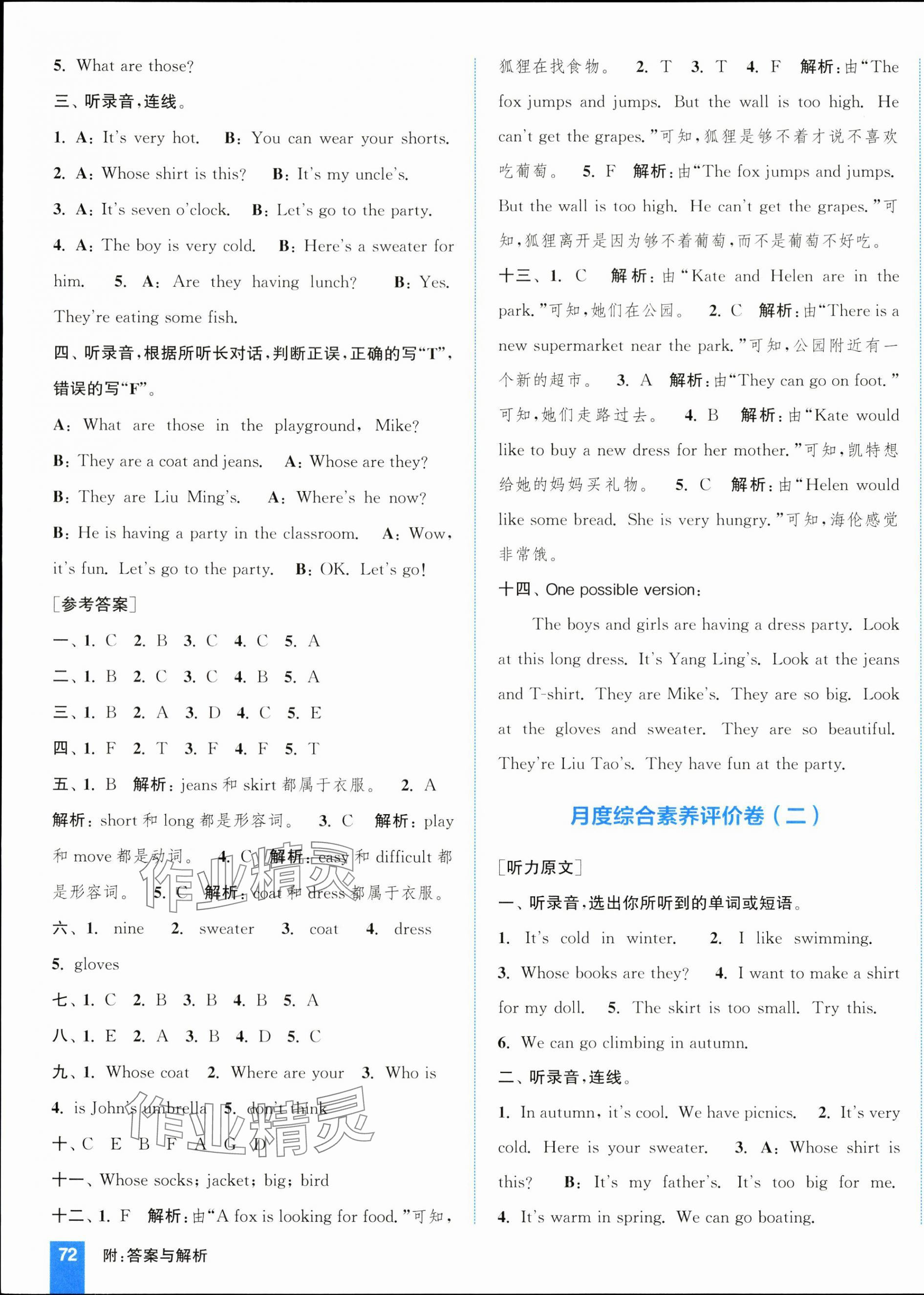 注:目前有些书本章节名称可能整理的还不是很完善,但都是按照顺序排列的,请同学们按照顺序仔细查找。练习册 2024年通城学典拔尖大试卷四年级英语下册译林版江苏专版 答案主要是用来给同学们做完题方便对答案用的,请勿直接抄袭。