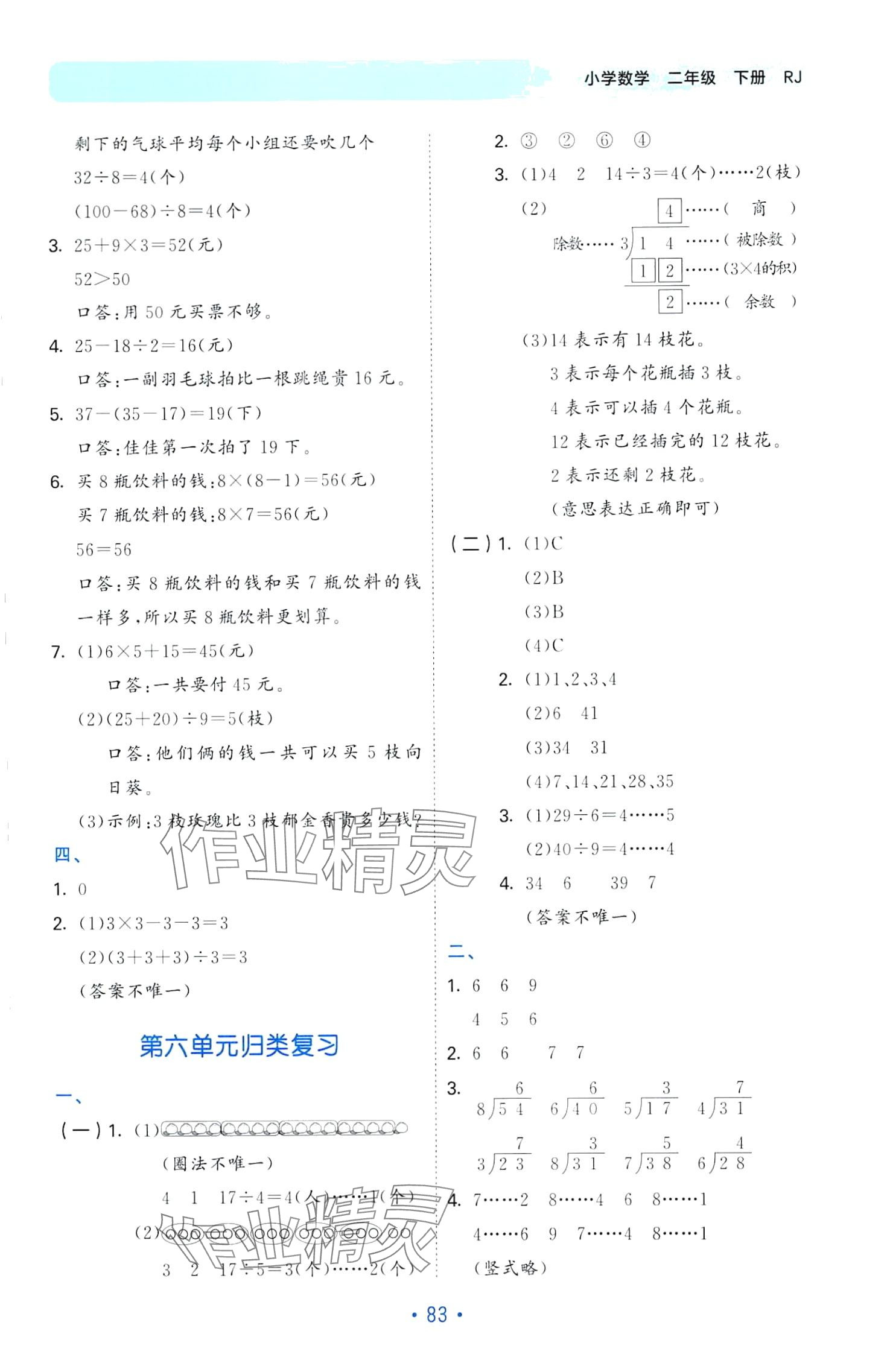 注:目前有些书本章节名称可能整理的还不是很完善,但都是按照顺序排列的,请同学们按照顺序仔细查找。练习册 2024年53单元归类复习二年级数学下册人教版 答案主要是用来给同学们做完题方便对答案用的,请勿直接抄袭。