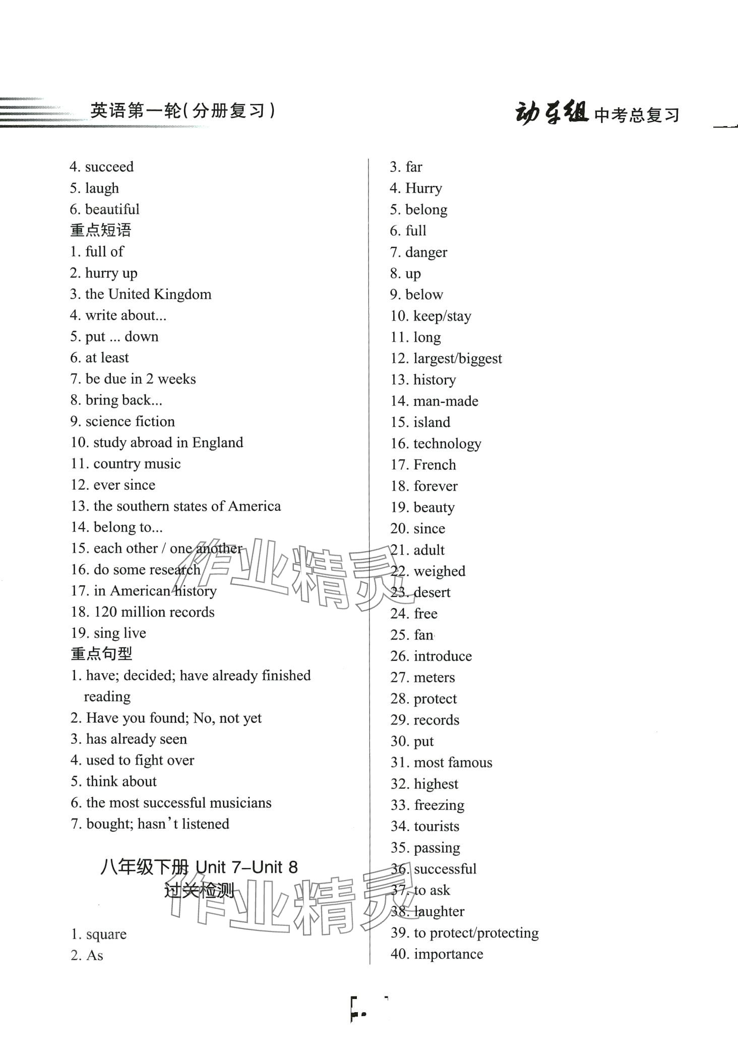 注:目前有些书本章节名称可能整理的还不是很完善,但都是按照顺序排列的,请同学们按照顺序仔细查找。练习册 2024年动车组中考总复习英语人教版第一轮 答案主要是用来给同学们做完题方便对答案用的,请勿直接抄袭。