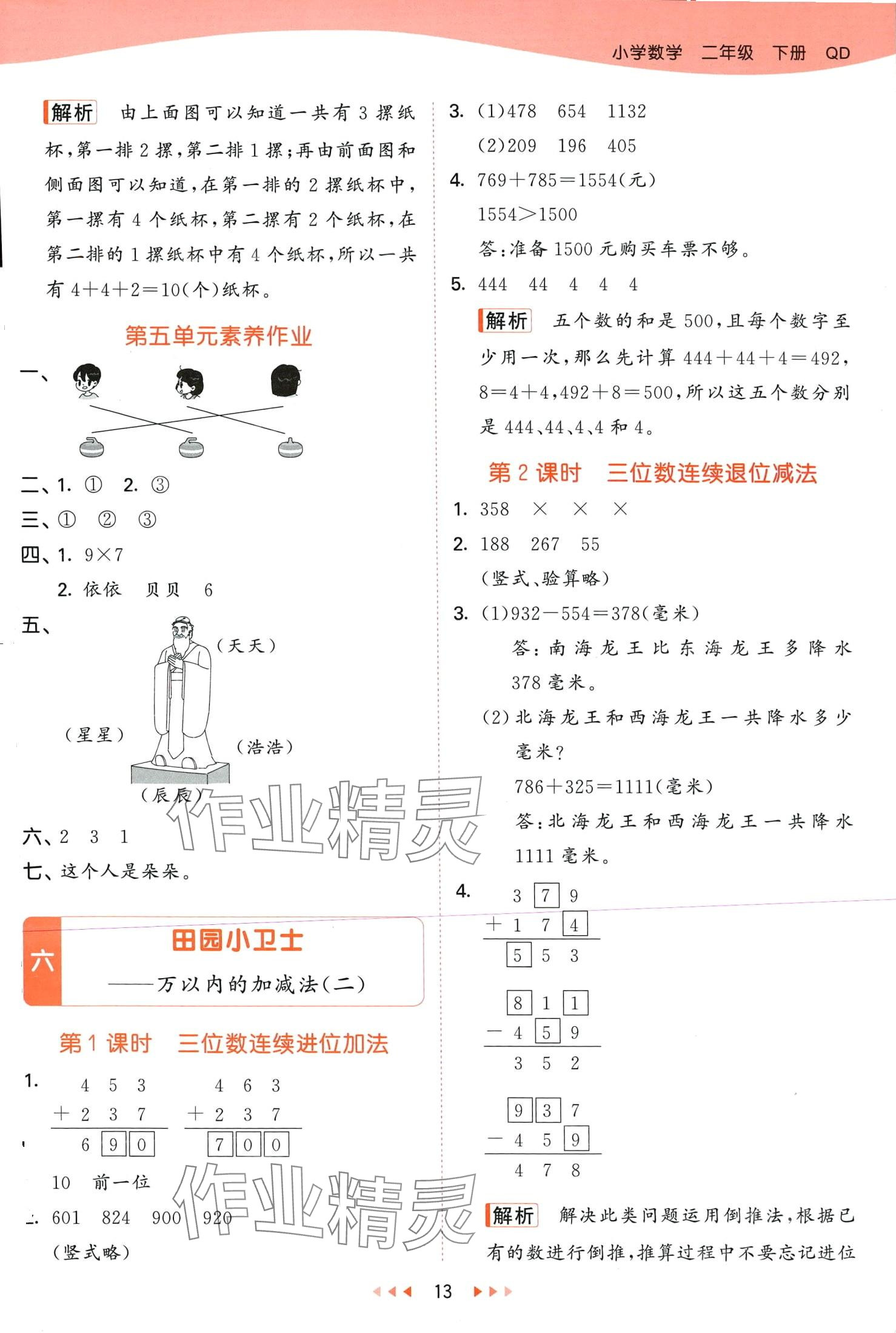 注:目前有些书本章节名称可能整理的还不是很完善,但都是按照顺序排列的,请同学们按照顺序仔细查找。练习册 2024年53天天练二年级数学下册青岛版 答案主要是用来给同学们做完题方便对答案用的,请勿直接抄袭。