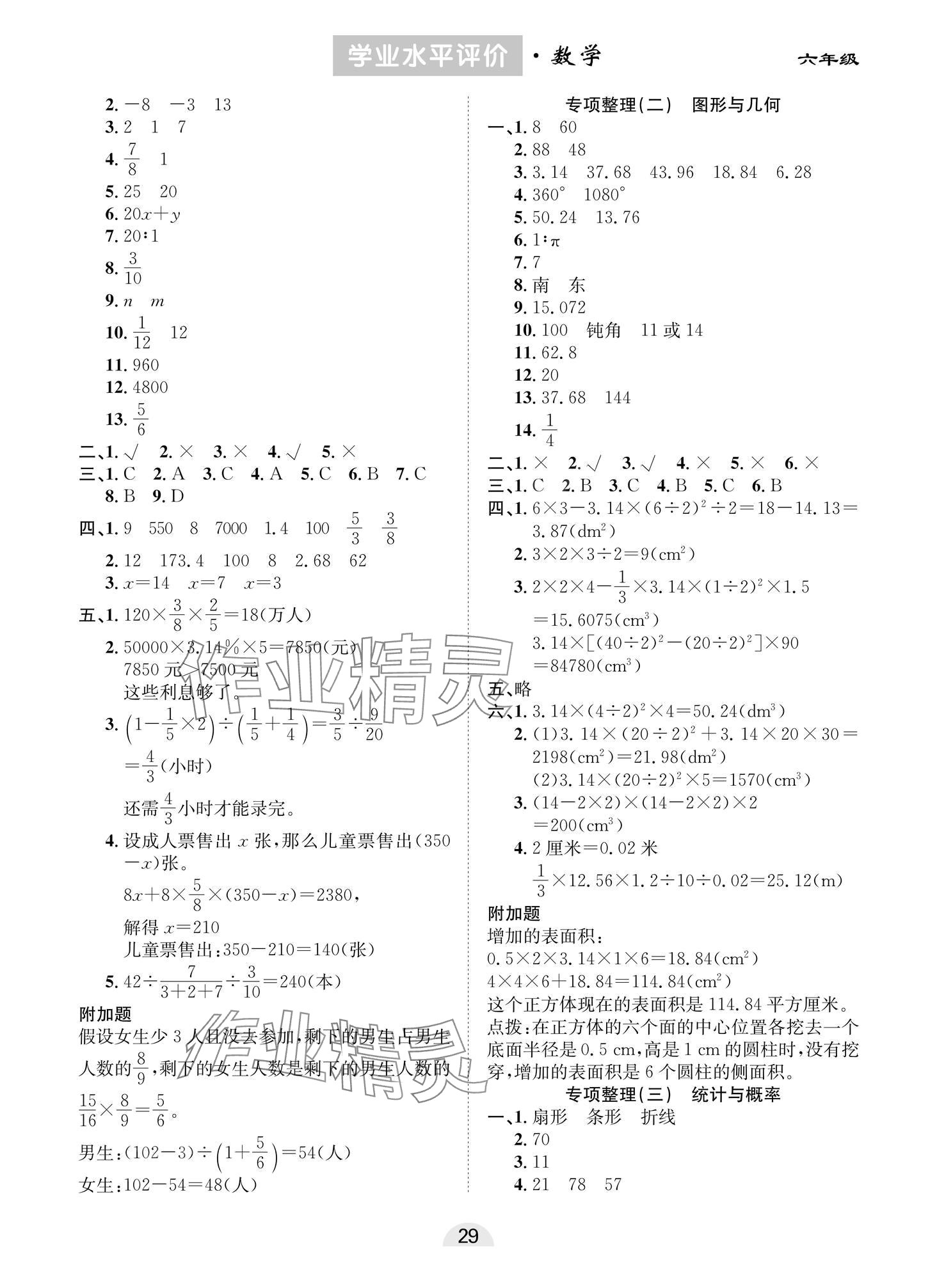 注:目前有些书本章节名称可能整理的还不是很完善,但都是按照顺序排列的,请同学们按照顺序仔细查找。练习册 2024年学业水平评价同步检测卷六年级数学下册人教版 答案主要是用来给同学们做完题方便对答案用的,请勿直接抄袭。