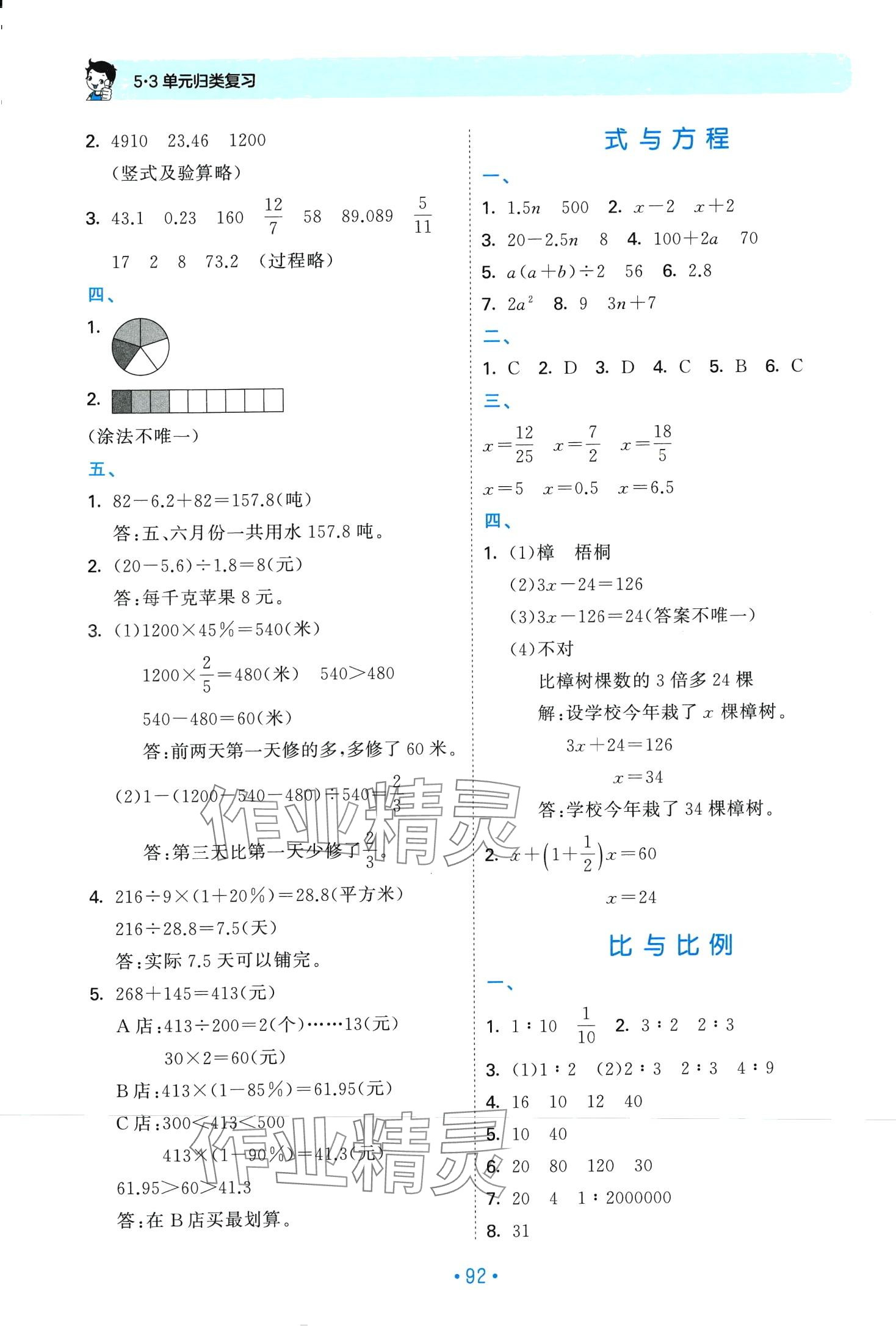 注:目前有些书本章节名称可能整理的还不是很完善,但都是按照顺序排列的,请同学们按照顺序仔细查找。练习册 2024年53单元归类复习六年级数学下册苏教版 答案主要是用来给同学们做完题方便对答案用的,请勿直接抄袭。